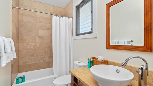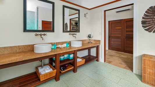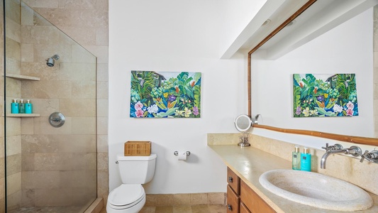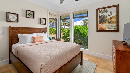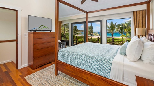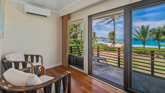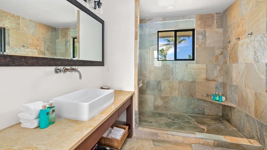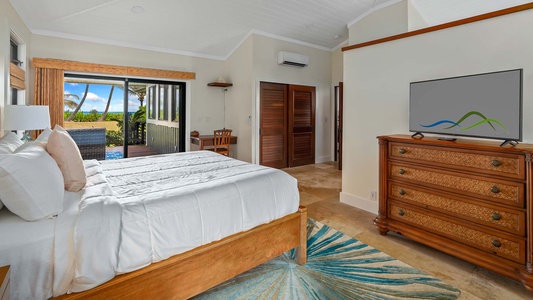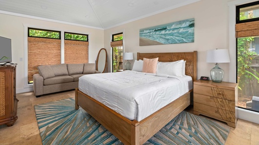 • Master Bedroom Suite – upper level, AC, king bed, seating area, access to private ocean view lanai, full bath with large walk-in shower
