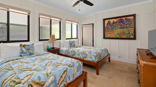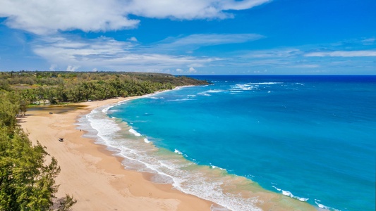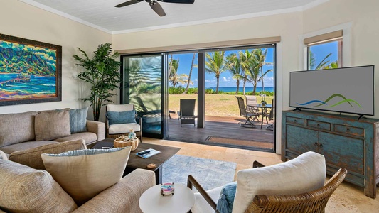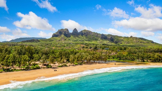 This quintessential tropical beachfront home with 4 bedrooms and 4 baths with air conditioning throughout is surrounded by lush tropical foliage and swaying palm trees is located on one of Kauai's most beautiful beaches. The expansive stretch of white sandy beach invites you to swim, surf, snorkel, kayak, paddle or or just simply relax on your lanai and take in the tranquility of Kauai.