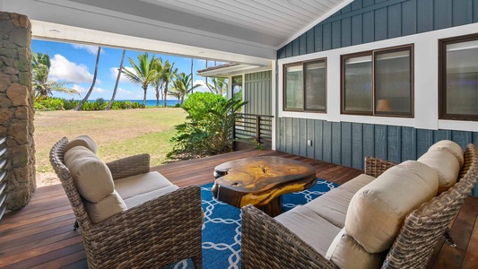 • Large covered open lanai with lounging and dining areas, BBQ and outdoor shower