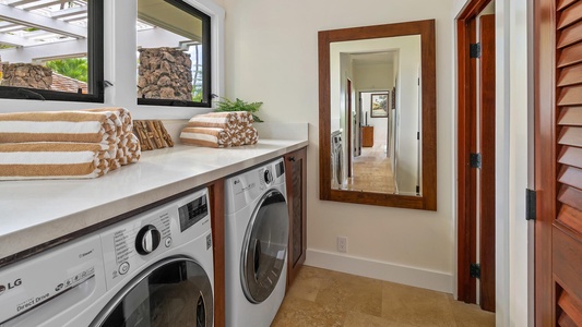 This home is a perfect place for a special family reunion celebration! The accommodations are excellent, wonderful views, great beach, very comfortable beds and pillows, well-equipped kitchen with quality cookware. For a group of 9, we had room for everyone. One of the favorites was the outdoor shower - great for cleaning off sand from the beach. We had a couple of minor service calls - faulty shower head, needed more garbage bags -and the staff was very prompt and friendly and took care of it immediately. It\'s quiet, private yard, and not too far from grocery stores and other attractions. I am sure anyone in our group would love to stay there again! Mahalo!