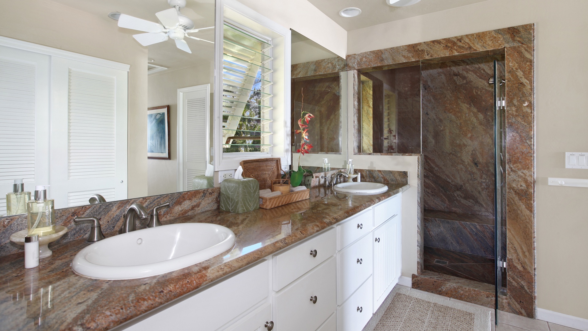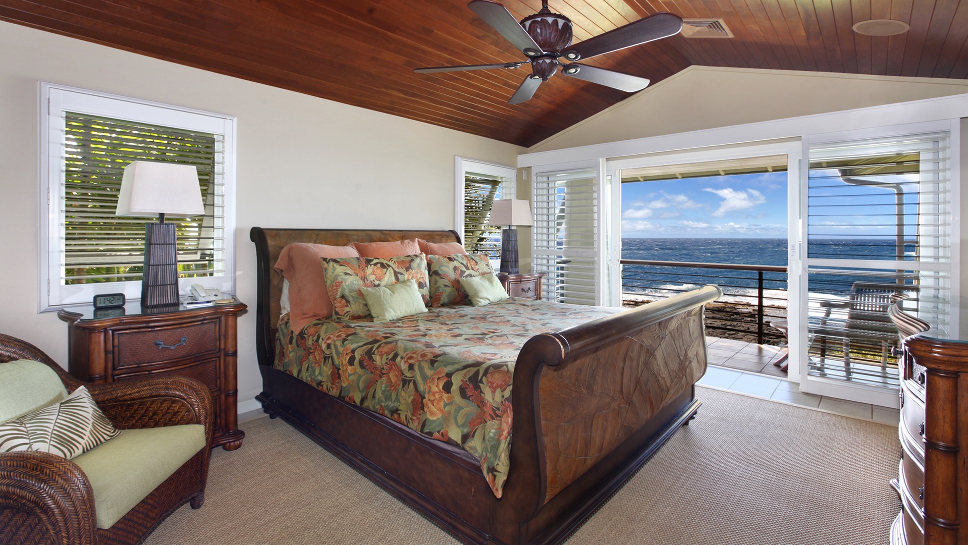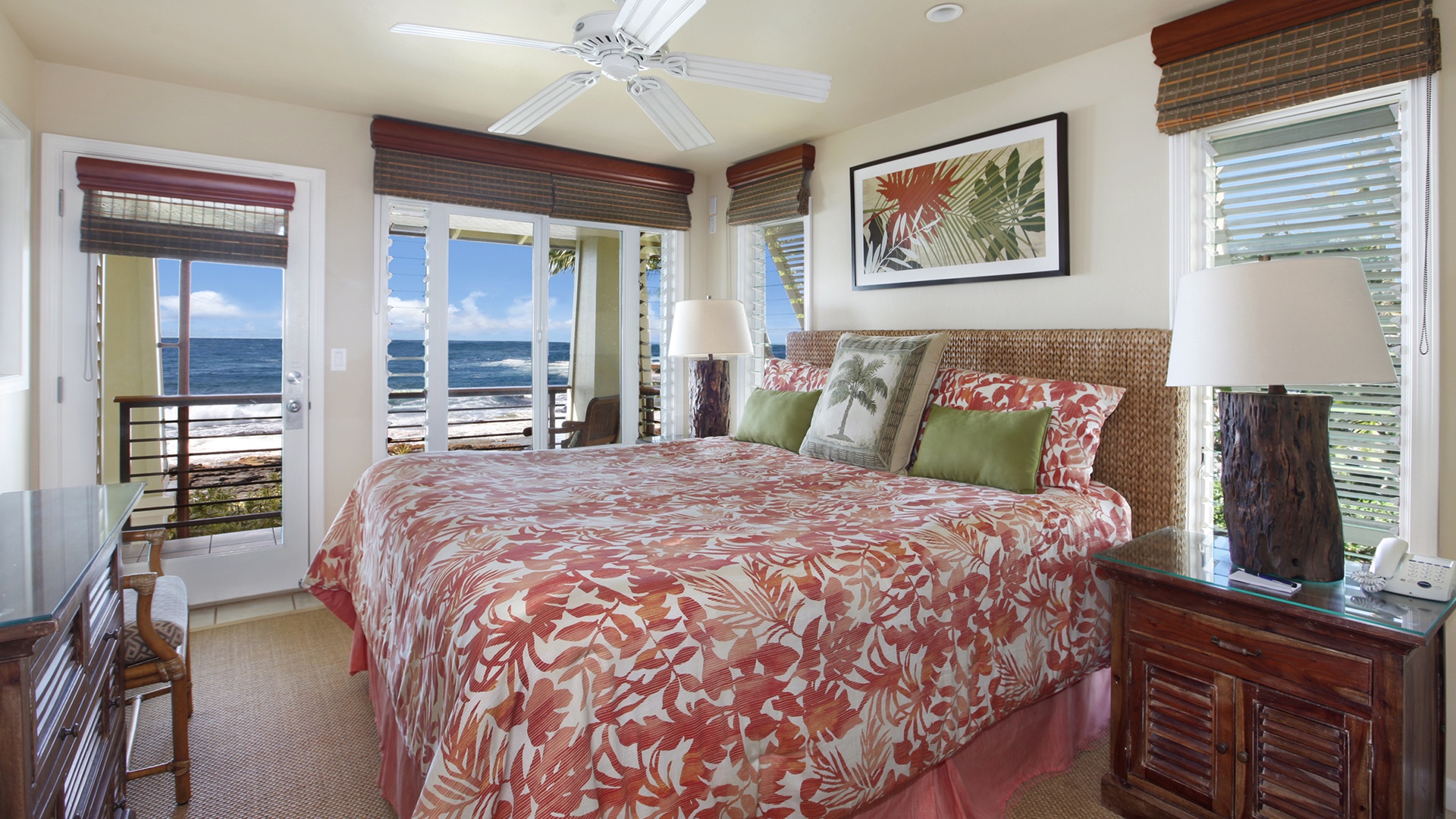 • Master Suite – oceanfront lanai, king bed, flat screen TV, full bath with walk-in shower, separate wing, washer/dryer, safe