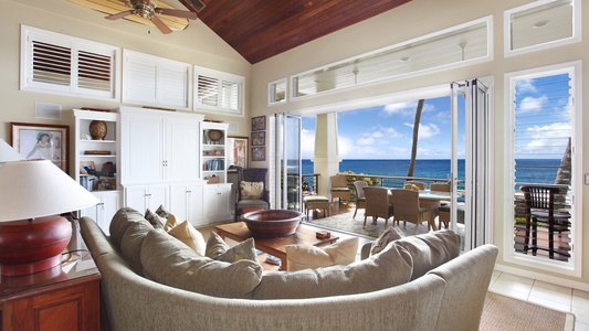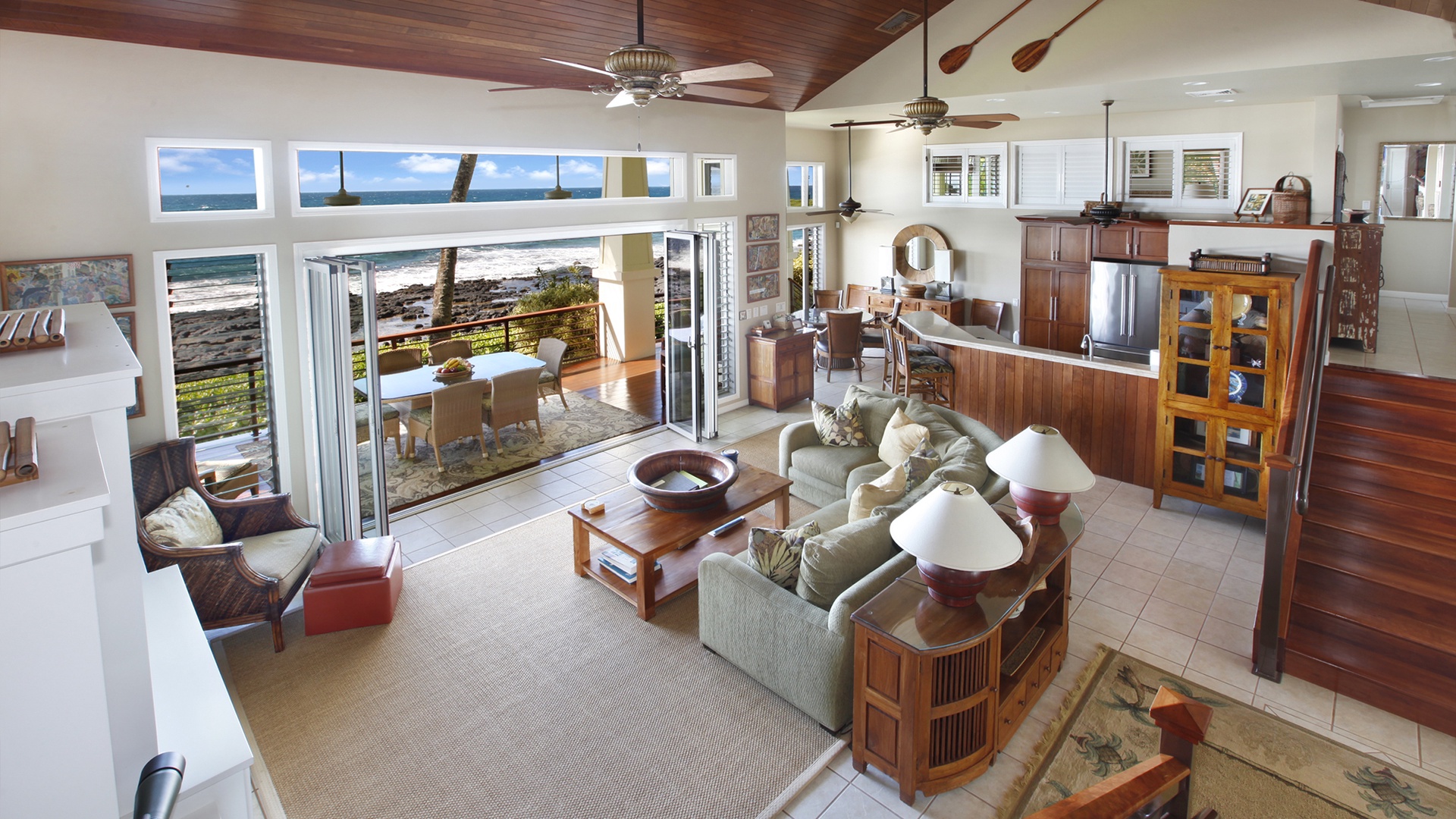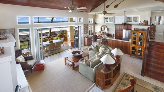 • Great room design: living room, dining room, kitchen, all with expansive ocean views