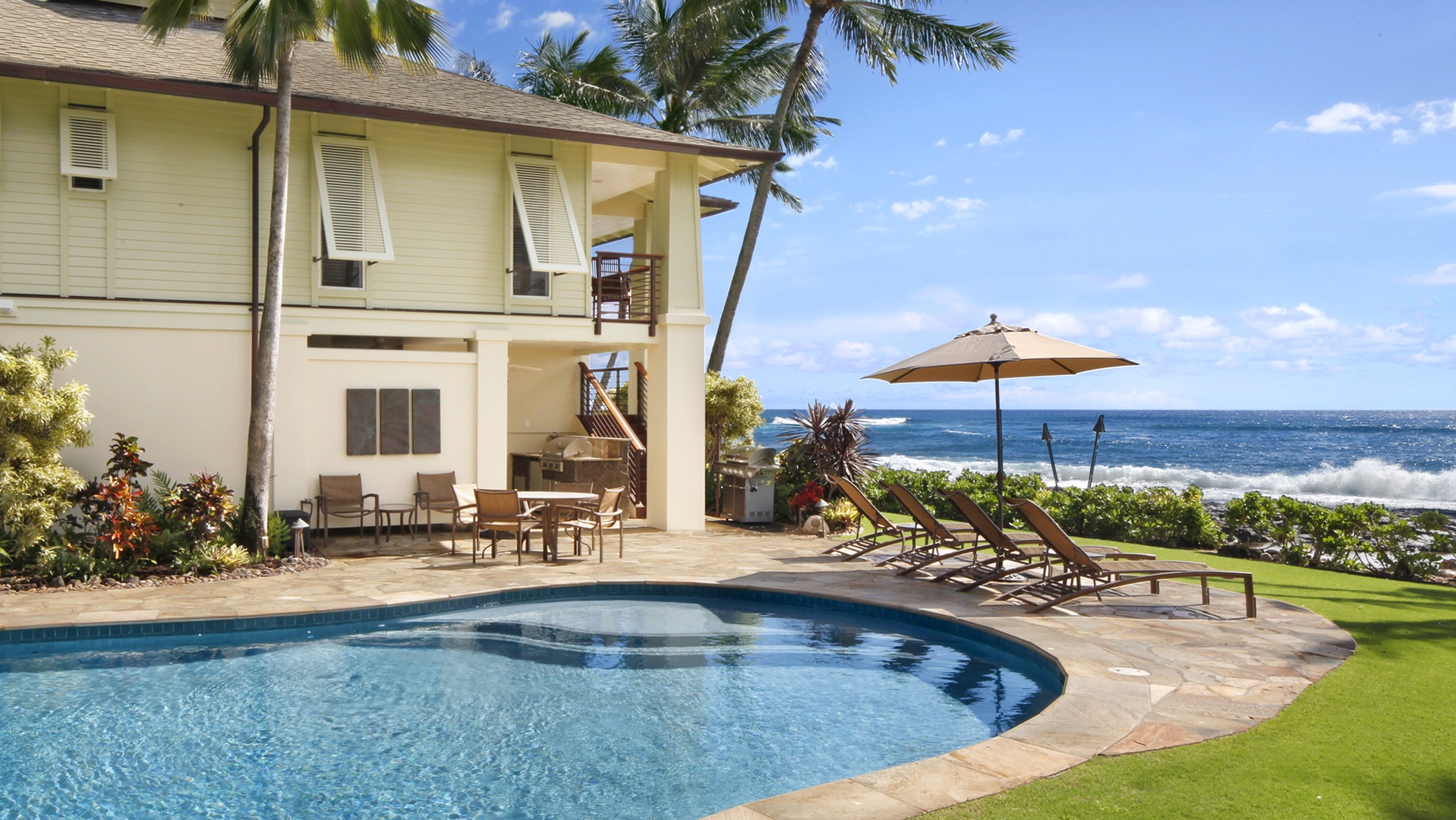 Amazing Kauai oceanfront rentals from Parrish Kauai feature this beautiful home at sunny Poipu Beach. Highlights include Hawaii plantation style design and décor and all the must have comforts, including spectacular ocean views from almost every room, three bedroom suites, air conditioning, pool and much, much more. One cannot help but relax while visiting Poipu Beach in this spectacular home decorated with original art, antiques, and other unique furnishings. Hale A Kai along with the gentle trade winds, Kauai sunshine and Pacific surf, all combine for the perfect Kauai vacation.