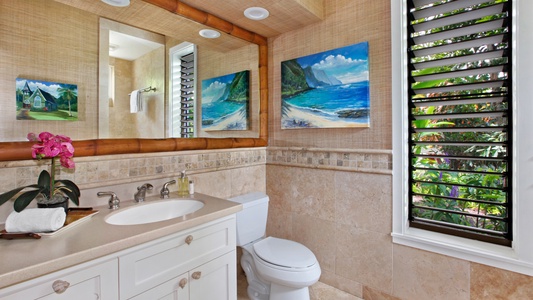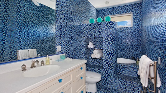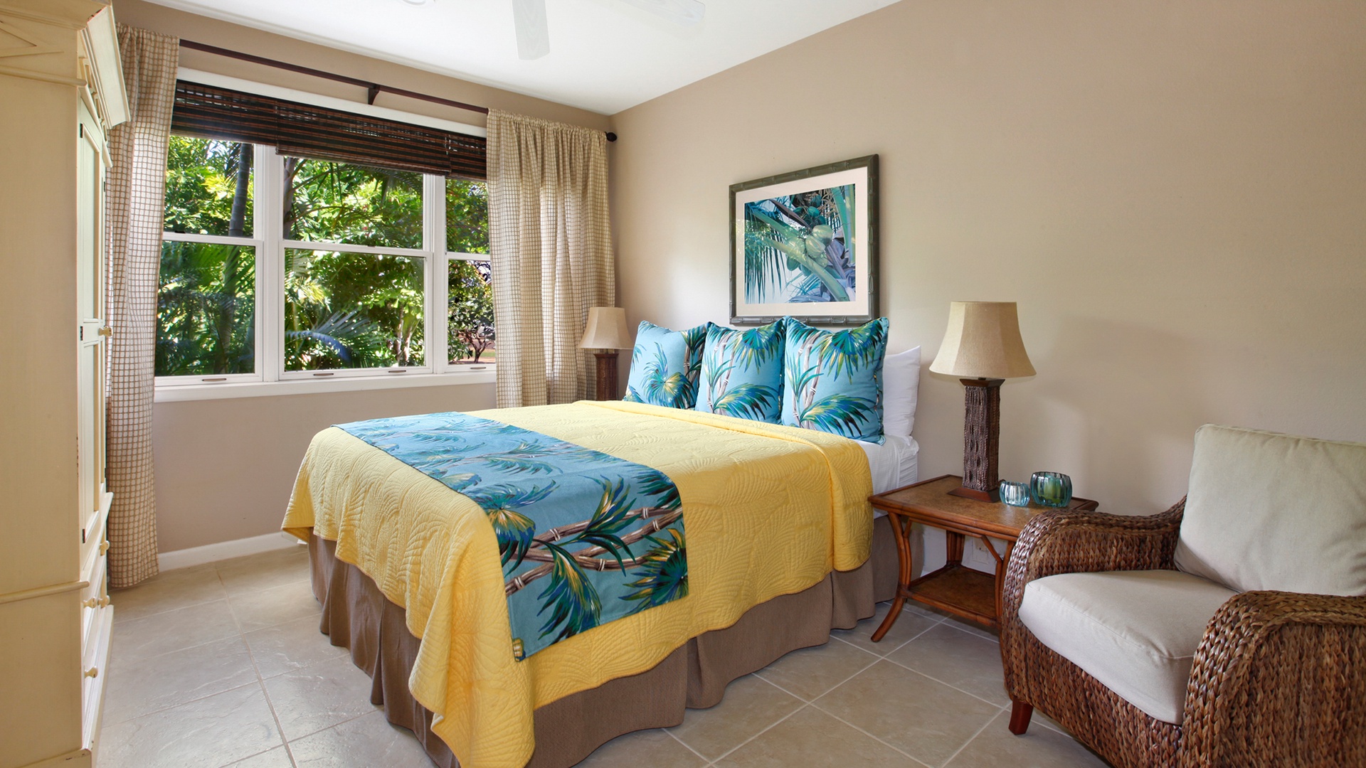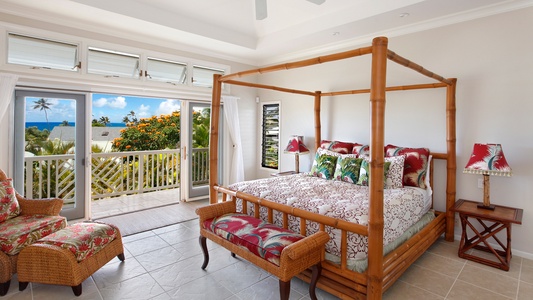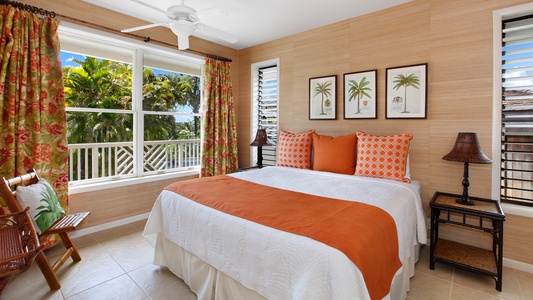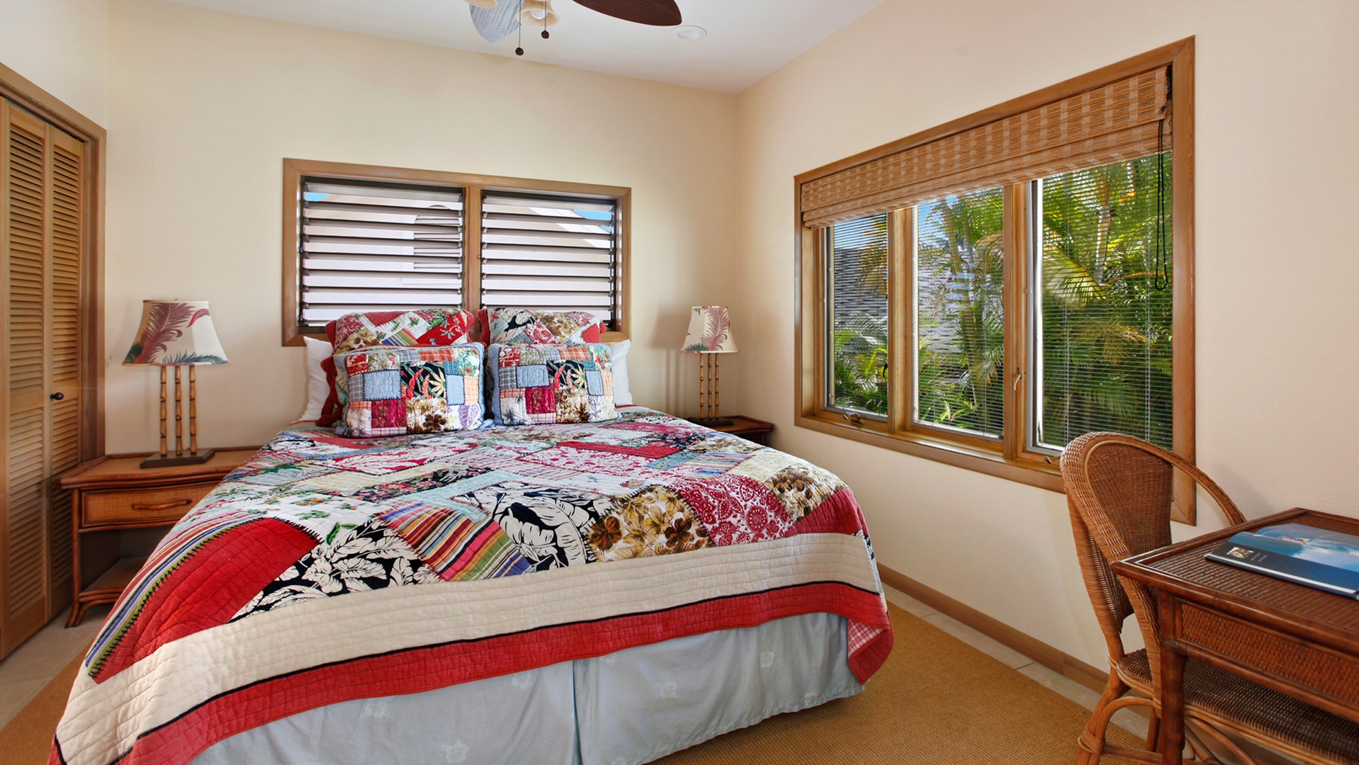 • Master Suite – Upper level, King bed, large walk-in shower with separate tub, TV, large ocean view shared lanai, walk-in closet