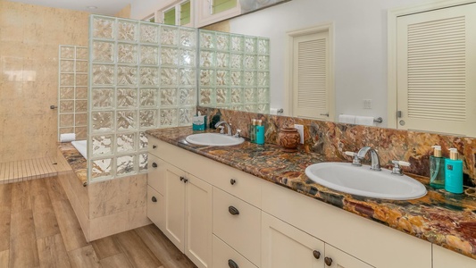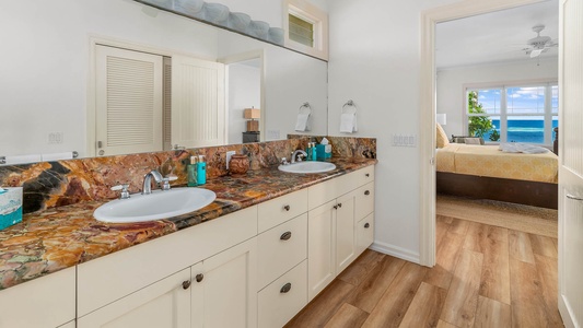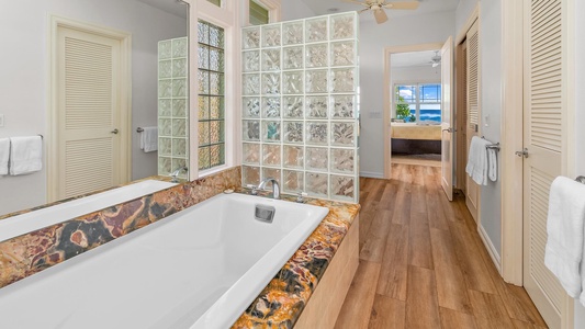 • Master Suite – oceanfront, king bed, flat screen TV, full bath with separate tub and walk-in shower, access to oceanfront lanai