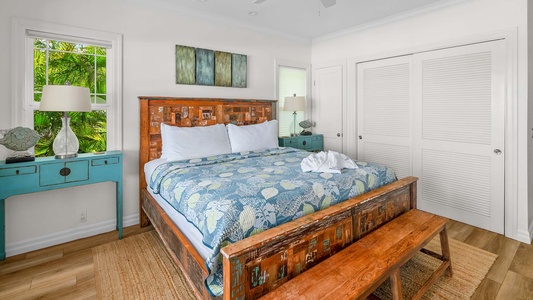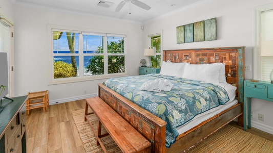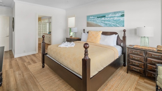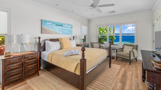 • Second Bedroom Suite – ocean view, king bed, flat screen TV, full bath, access to oceanfront lanai