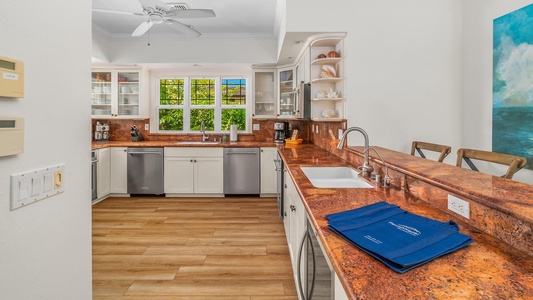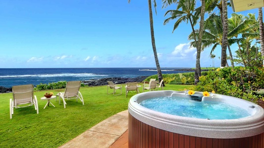 What a fabulous property! Perfect size and layout for our family of 10 that stayed there. We spent hours on the lanai in the rocking chairs just watching and listening to the waves crash. The kitchen is huge, with every utensil you could possibly need. The bathrooms were great with tons of counter space. The kids spent evenings enjoying the hot tub. Having a grill in the back was also nice to have. We will definitely stay here again the next time we come to Kauai!