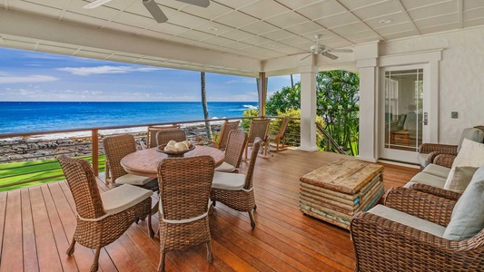 One of the finest oceanfront Kauai vacation homes set on the edge of the spectacular Poipu coastline, this home has ocean and coastline views, central air conditioning, an oceanfront Jacuzzi spa, five bedroom suites and much more. Offering the perfect setting for a large family or group traveling together, this home is the perfect place to settle in and enjoy all that Kauai has to offer. Whether it is walking Lawai Beach Road, relaxing on the expansive covered oceanfront lanai, or swimming at nearby Kukui’ula Bay, this home offers its guests top-notch vacation surroundings.