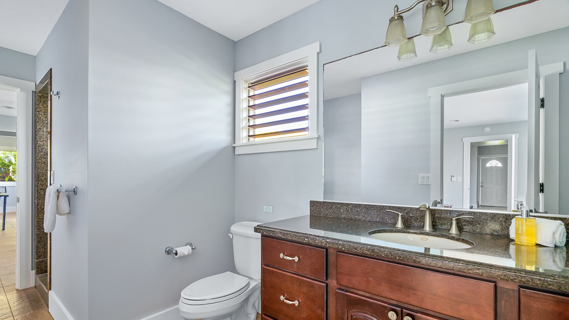 We stayed at Hale Lani Kai for a week in April 2019. It is a beautiful house and as close as you can get to the best swimming beach in Kauai. Our party consisted of 4 adults and 2 kids, age 4 and 8. When you want to go to the beach, just walk across the road with very slow, almost no traffic. We swam with sea turtles and monk seals! The water in the kid\'s portion of the beach has a sandy bottom and is only a couple of feet deep. Adults can swim in deeper water. A drive to restaurants and shops takes about 5 minutes. Why stay in a rabbit-warren resort where you have to rent snorkeling gear and boogie boards whereas Hale Lani Kai has all that, plus lots of privacy in the house. The large bathrooms are almost as nice as at the Bellagio Las Vegas! There is ample parking, but there are stairs to climb between floors. The property manager was very communicative. We would definitely come back.