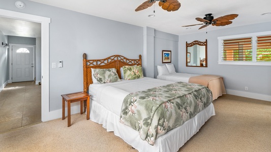 This home was the perfect location, a 2 minute walk across the street to Poipu and Brennecke beaches. They had all the best gear- boogie boards, snorkels, beach equipment, etc. The kitchen has all cookwear, nice appliances, etc. The HVAC was a nice extra as it was quite warm. we stayed with 3 kiddos and our nanny, who had a separate area to retreat to downstairs. We will be back!