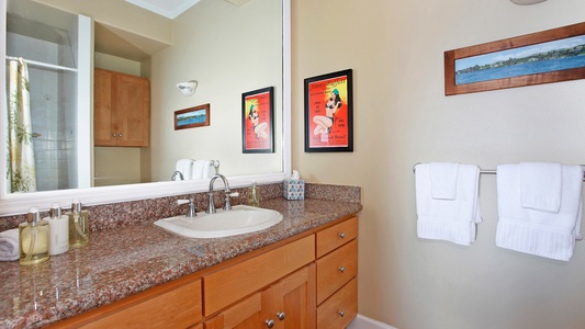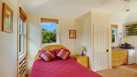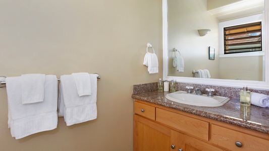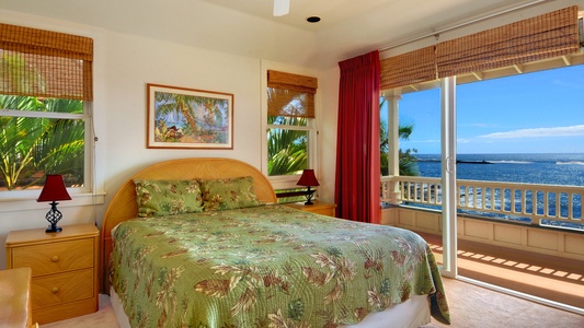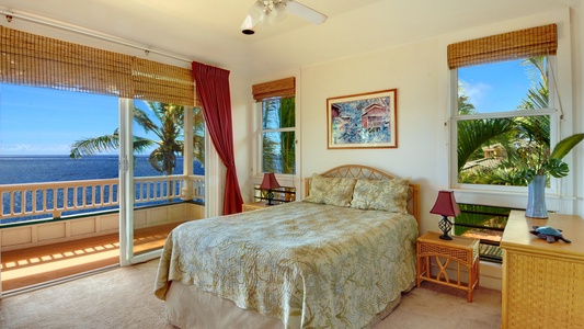 •	Master Bedroom Suite – upper level, king bed, AC, TV, access to oceanfront lanai, full bath with shower