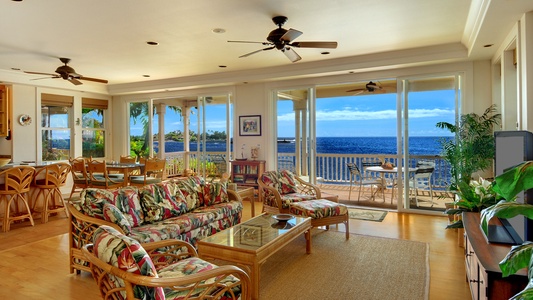 •	Great room has oceanfront living room, dining room and kitchen, access to large oceanfront lanai