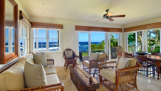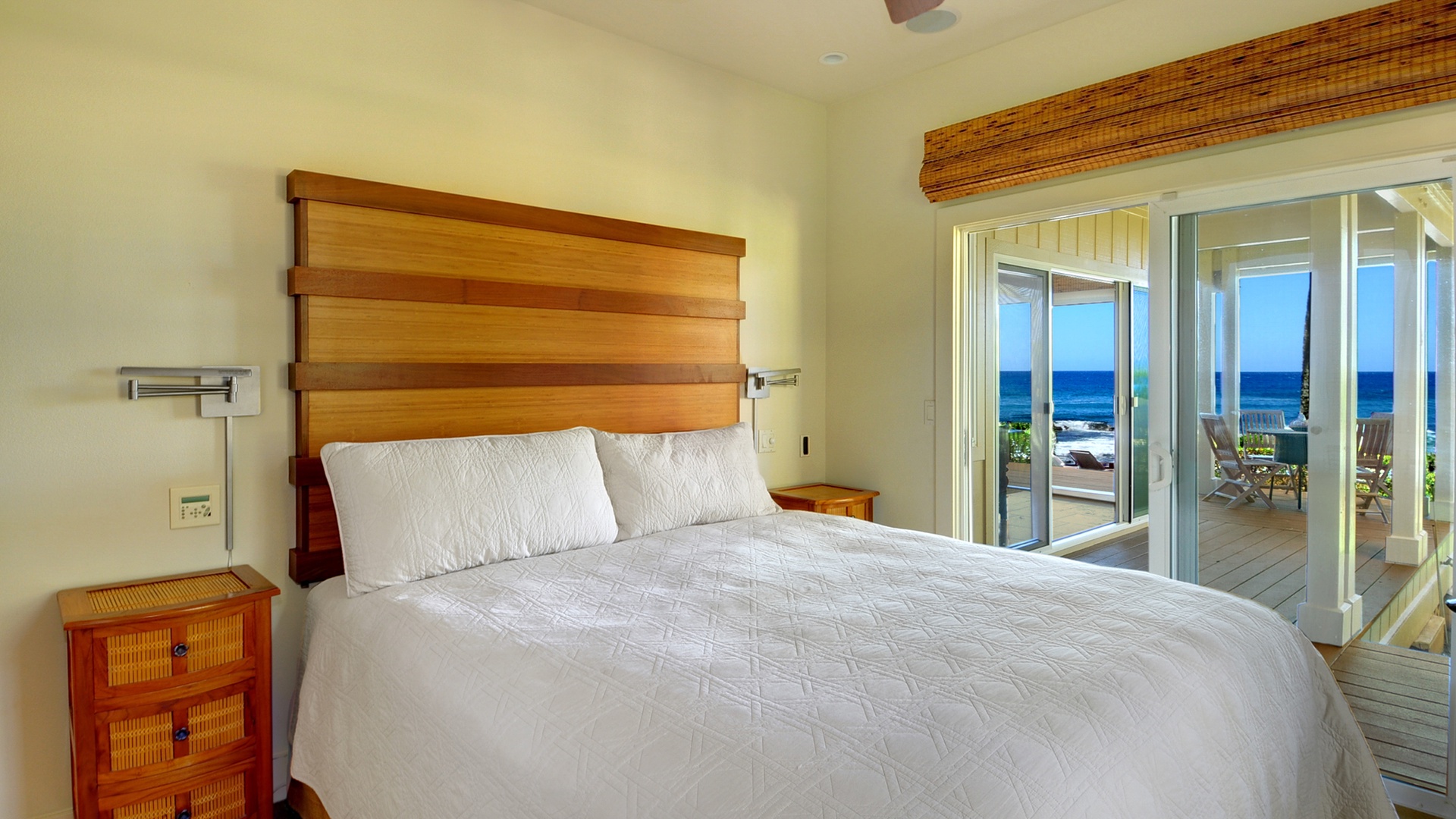 Go to sleep hearing the crash of the waves and the ocean breeze.  Wake up to the sounds of the ocean and a beautiful panoramic view of paradise.  Use PARADISE in every sentence!!  truly undersold the beauty of this house/island.  If you couldn’t be happy in this house on this island – you couldn’t be happy anywhere.  20th anniversary – we were determined to visit Hawaii, by now, when we came across your web site and this house, we HAD to to stay here.  Simply amazing – the island and the house.  This is absolutely the first vacation we have had in 20 years where we weren’t ready to go home.  We could stay here forever.