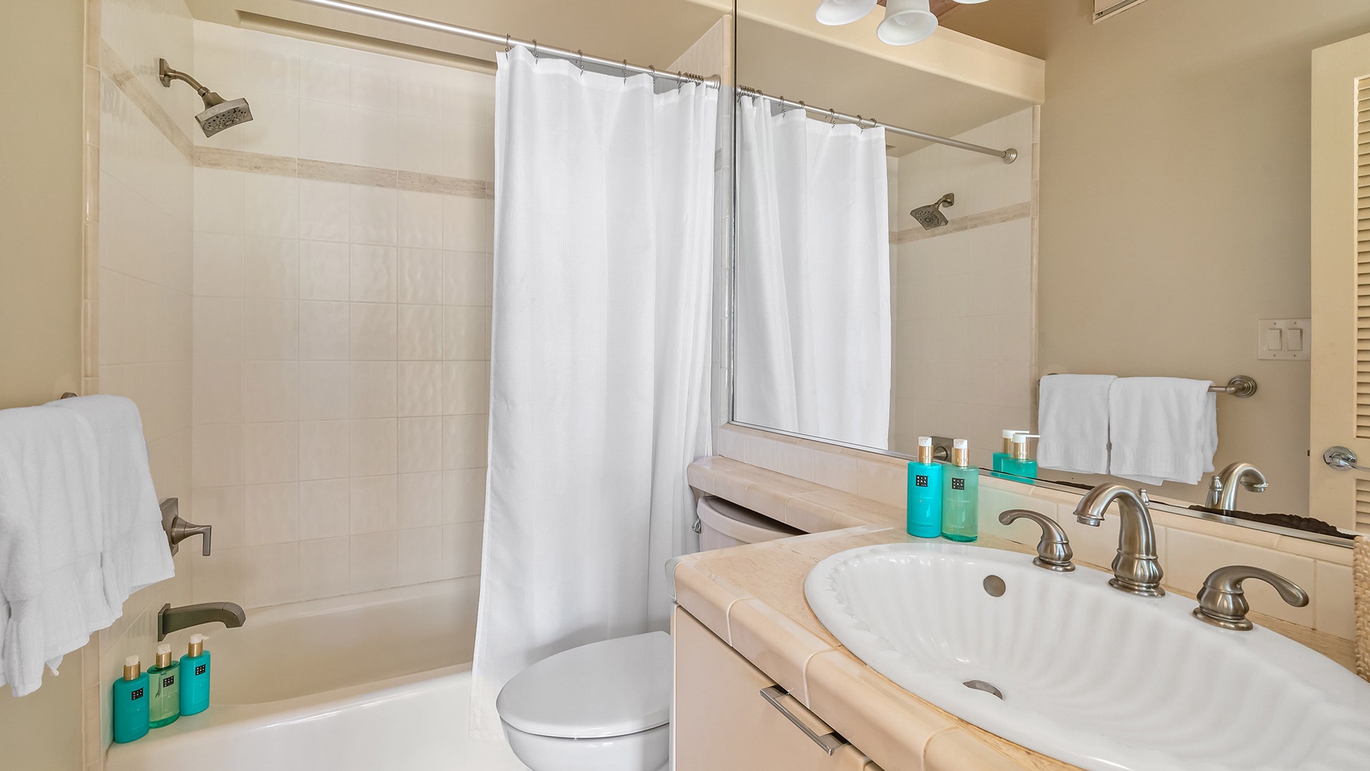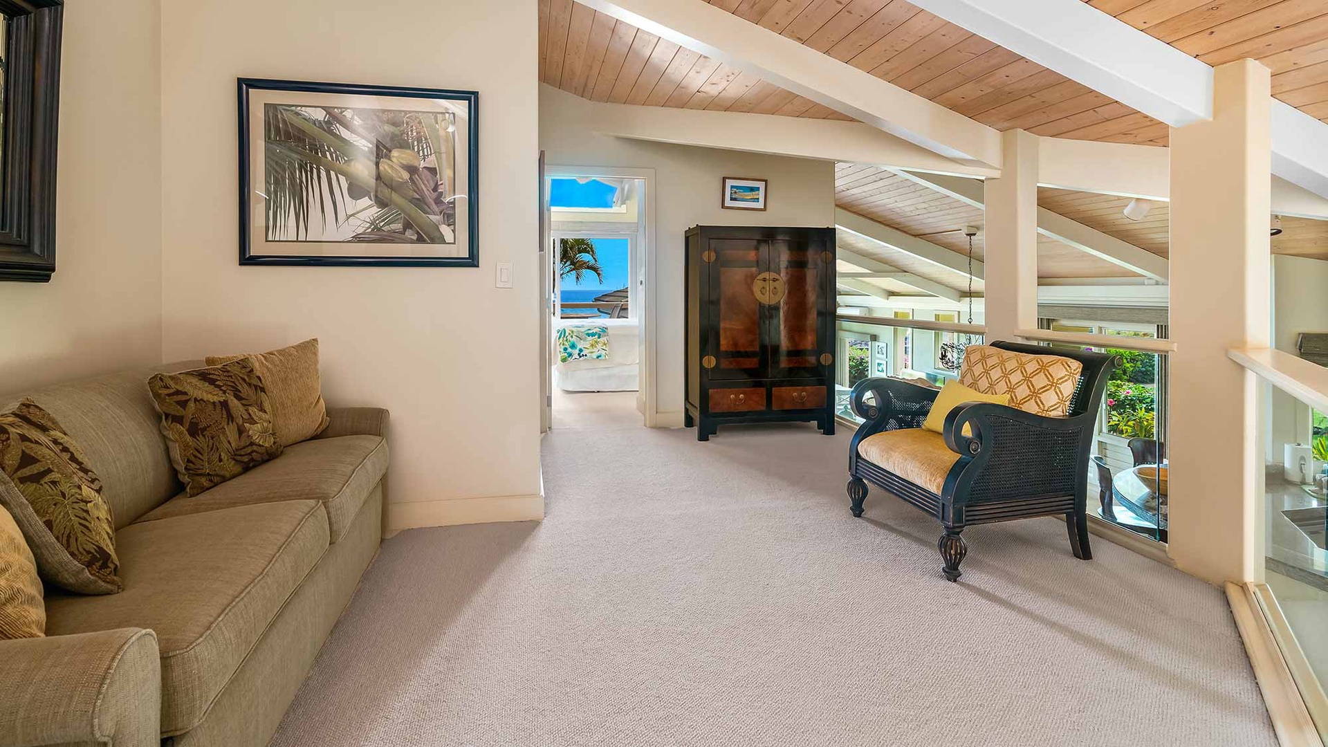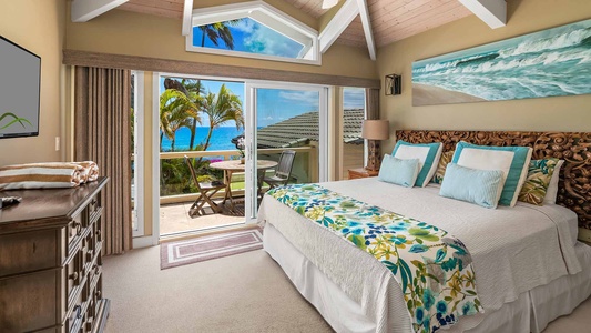 • Second Suite – upper level, ocean view lanai, king bed, TV, full bath tub with shower