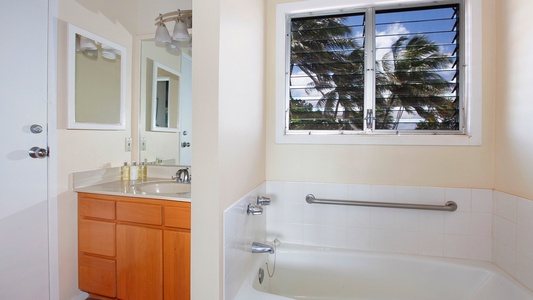 • Third bedroom – first floor, king bed, ocean view, 1/2 bath en suite, shared full bath tub with shower