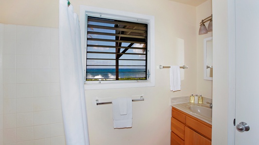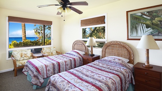 • Second bedroom – first floor, 2 twin beds (convert to king), ocean view, shared full bath tub with shower