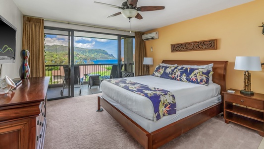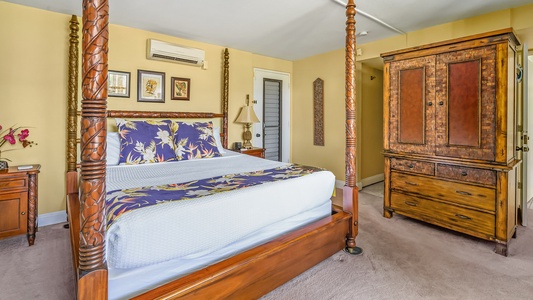 • Master Suite – king bed, access to private ocean/garden view lanai, TV, full bath with walk-in shower