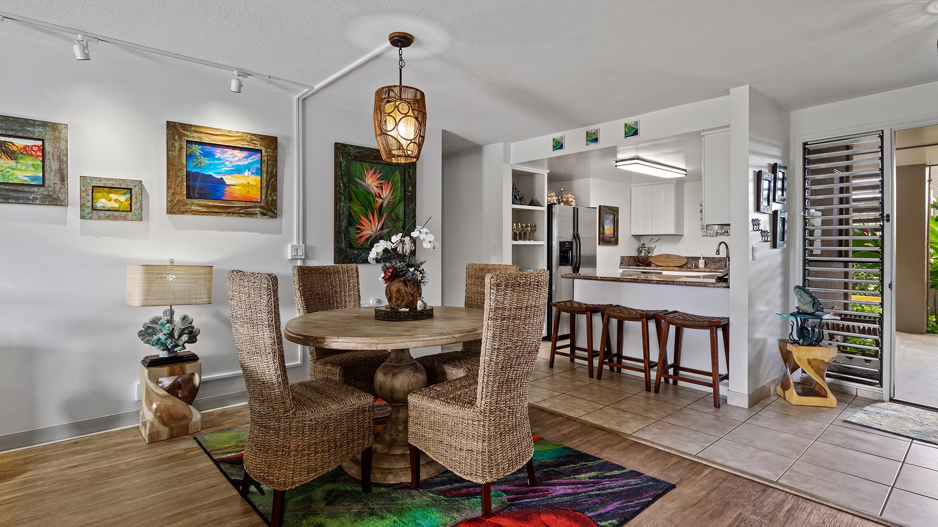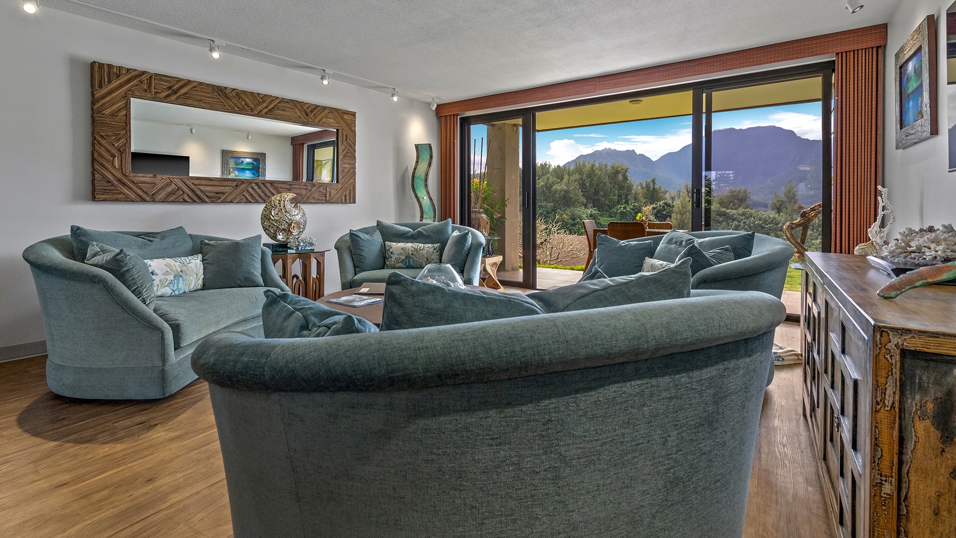 • Great room design – kitchen, dining and living room all with ocean views, ocean view lanai, no AC