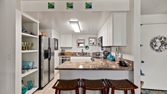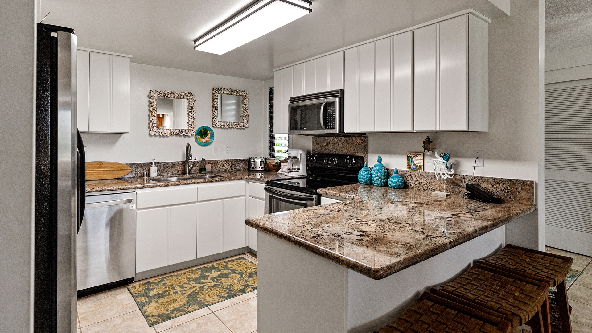 • Fully equipped kitchen with granite counters and stainless steel appliances
