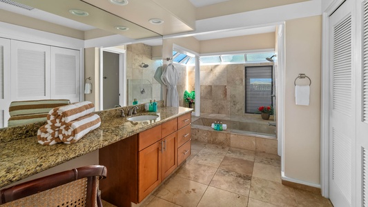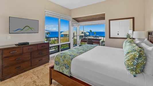 • Master Bedroom Suite – ocean view, AC, king bed, flat screen TV, desk with ocean view, access to ocean view lanai, full bath, tub with shower