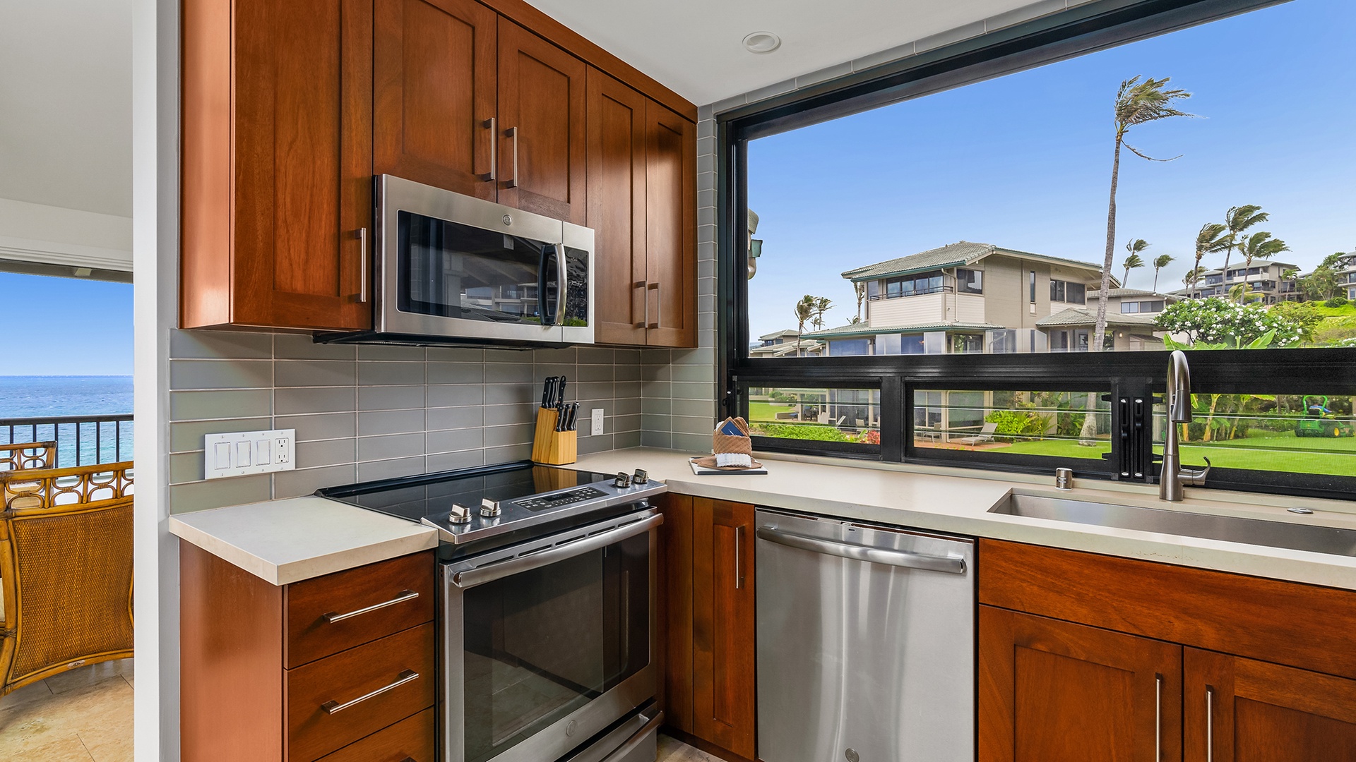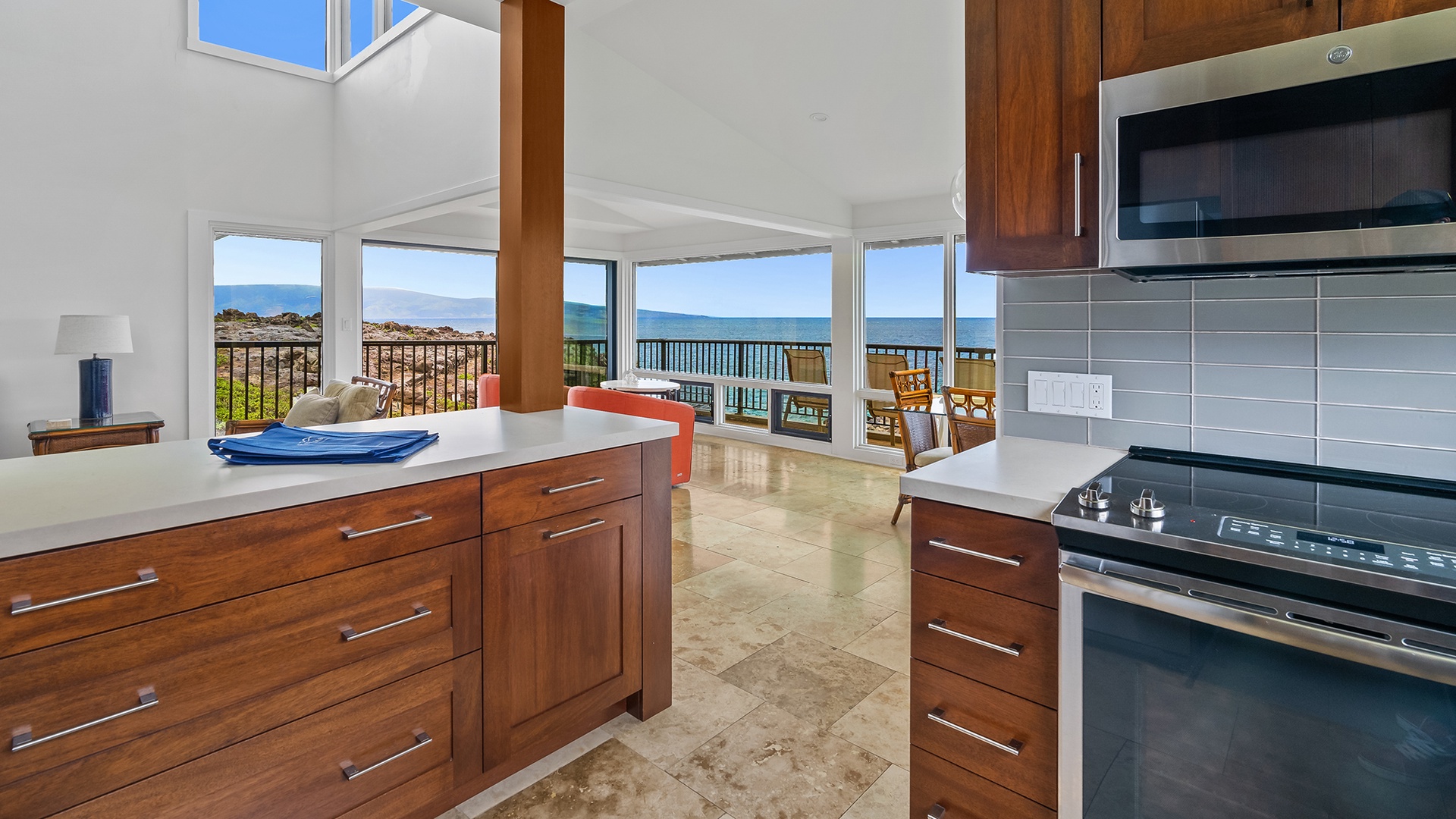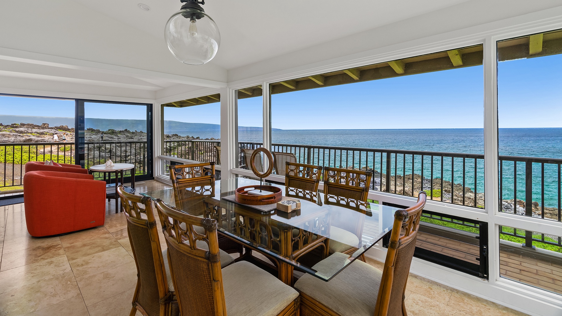• Great room design – kitchen, dining and living room all with ocean views, access to covered ocean view lanai
