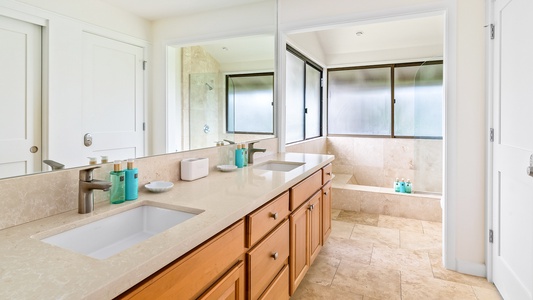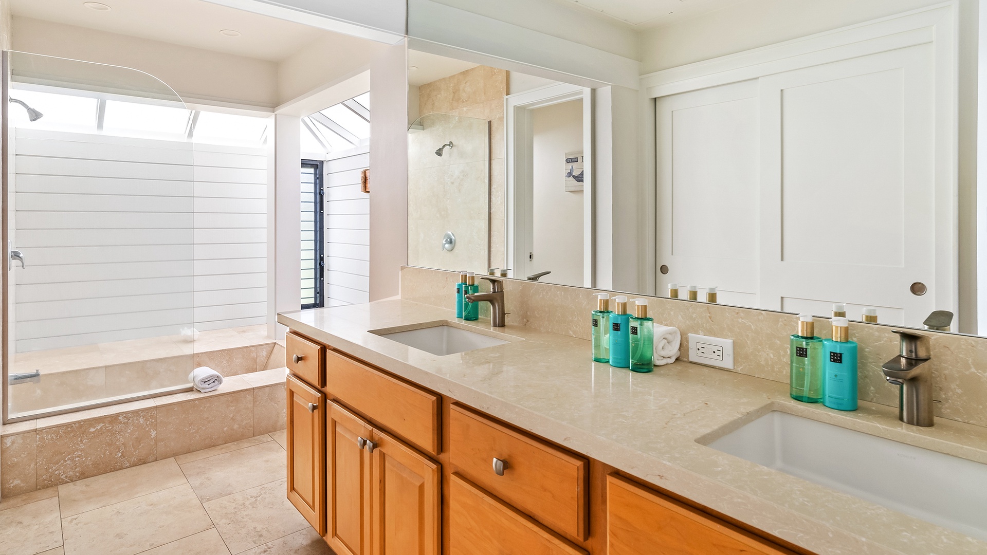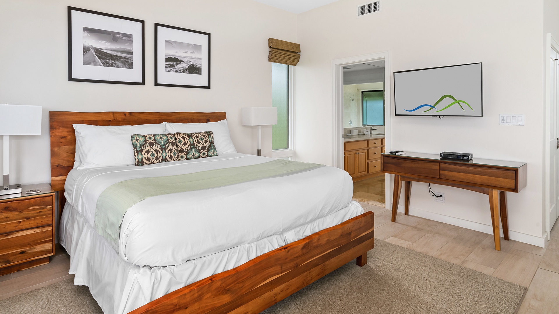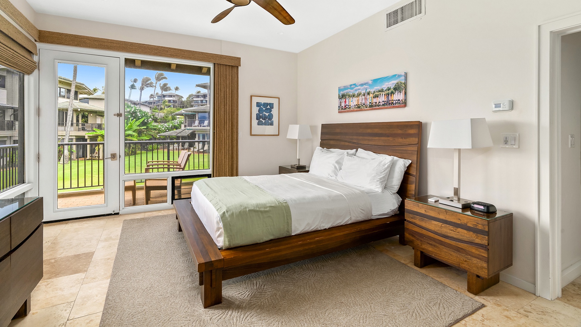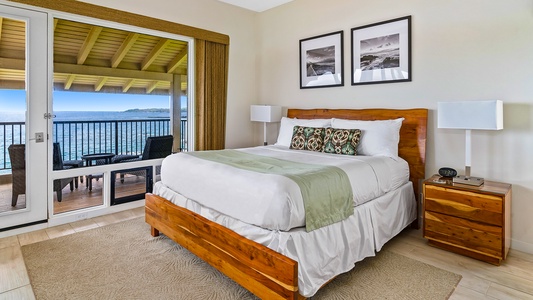 • Second Bedroom Suite – ocean view, lower level, AC, king bed, access to private ocean view seating lanai, full bath with tub and shower