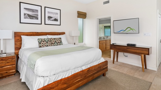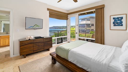 • Master Bedroom Suite Loft – ocean view, upper level, AC, king bed, flat screen TV, access to covered ocean view seating lanai, full bath with tub and shower