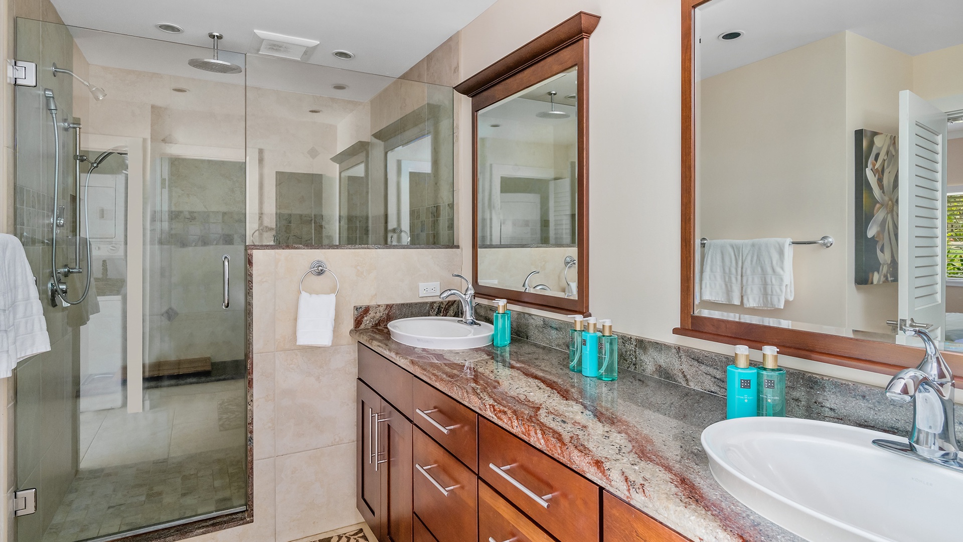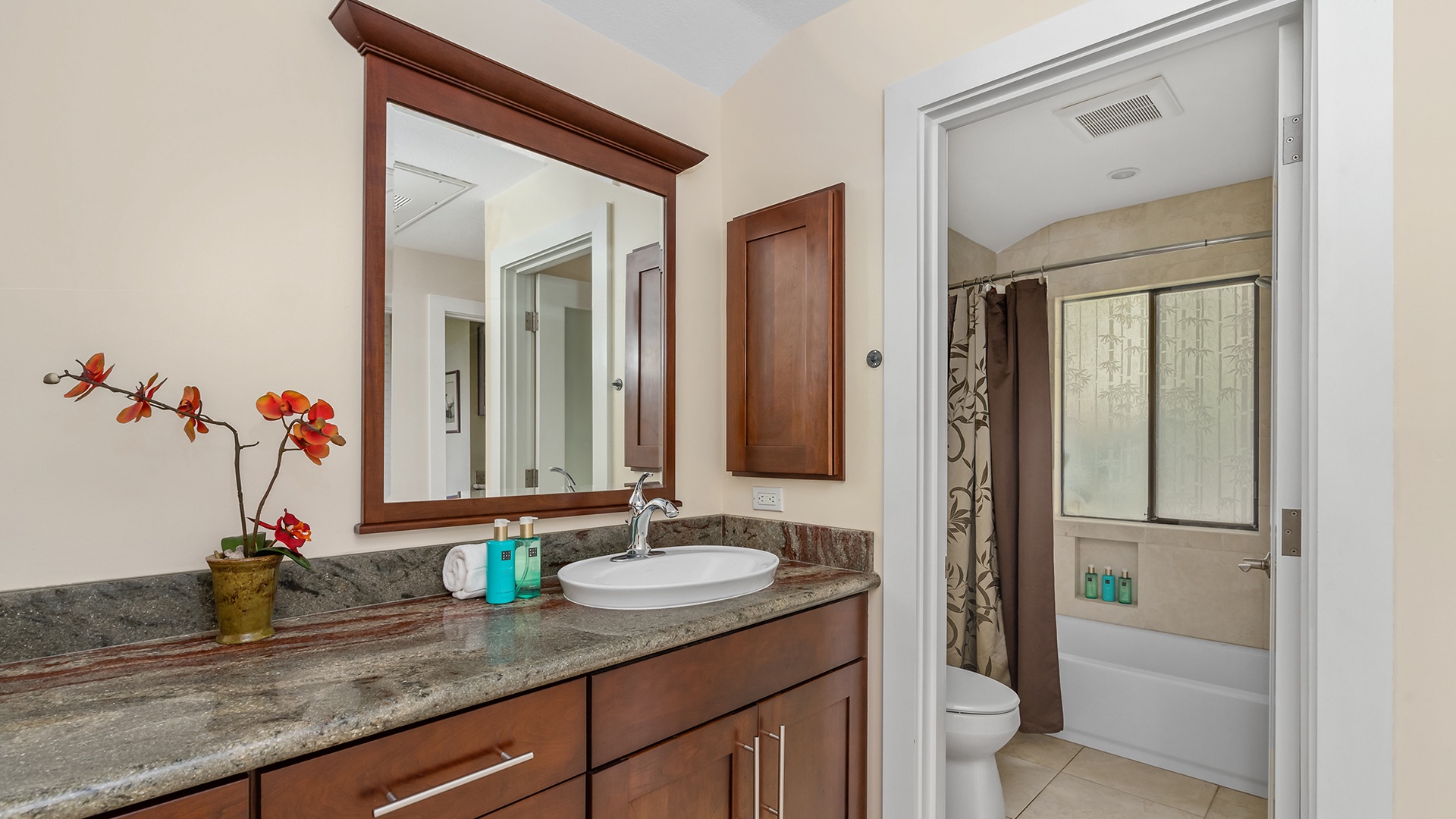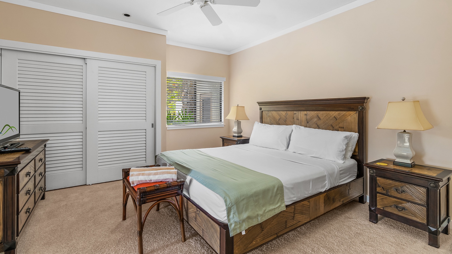 • Second Bedroom Suite – golf course view, AC, two twins (convertible to one king upon request), TV, access to golf course view lounging lanai, full bath, tub with shower