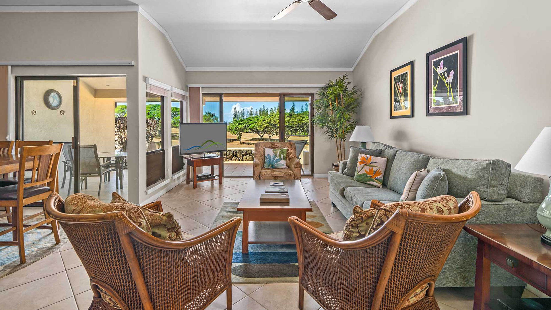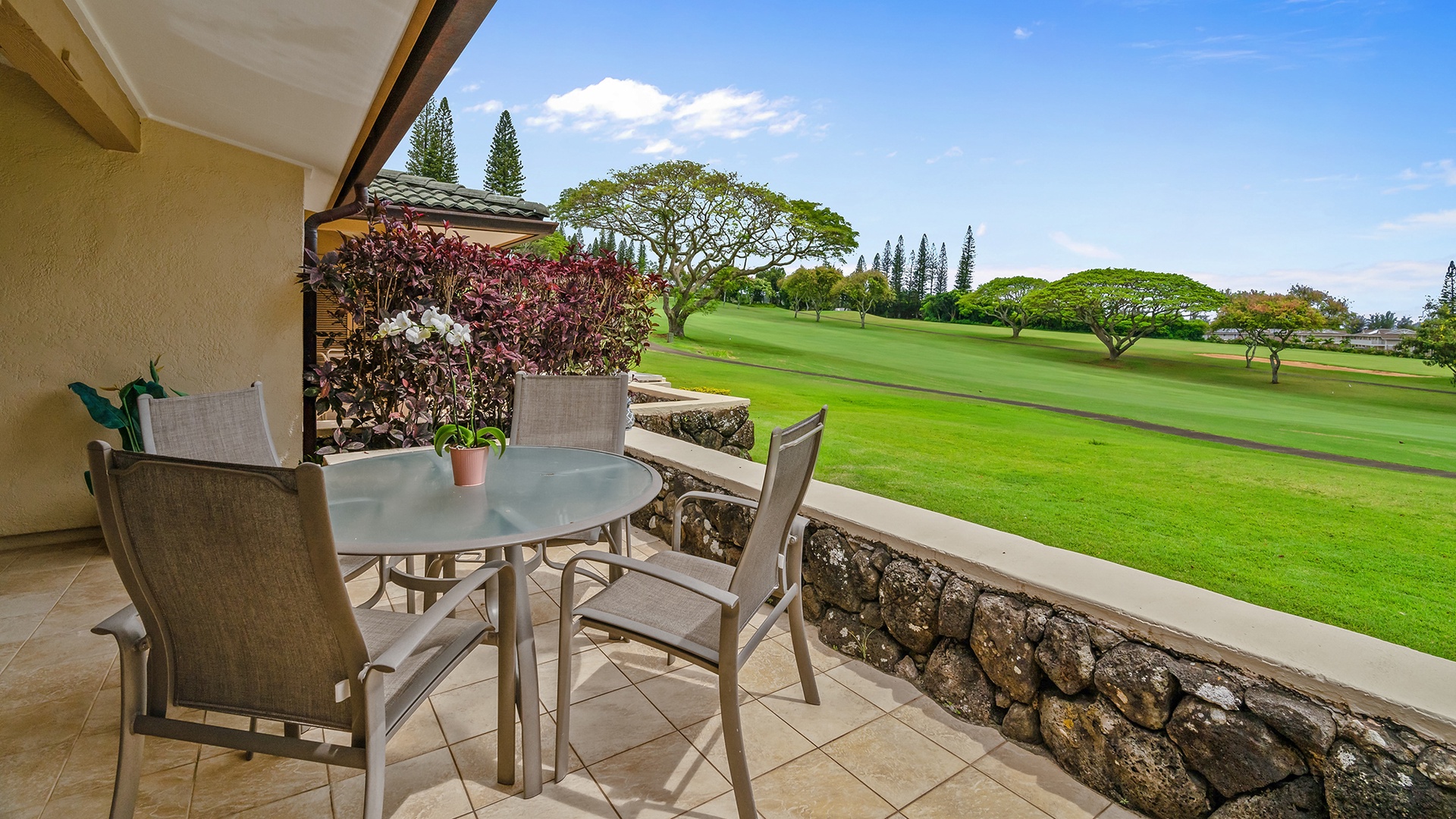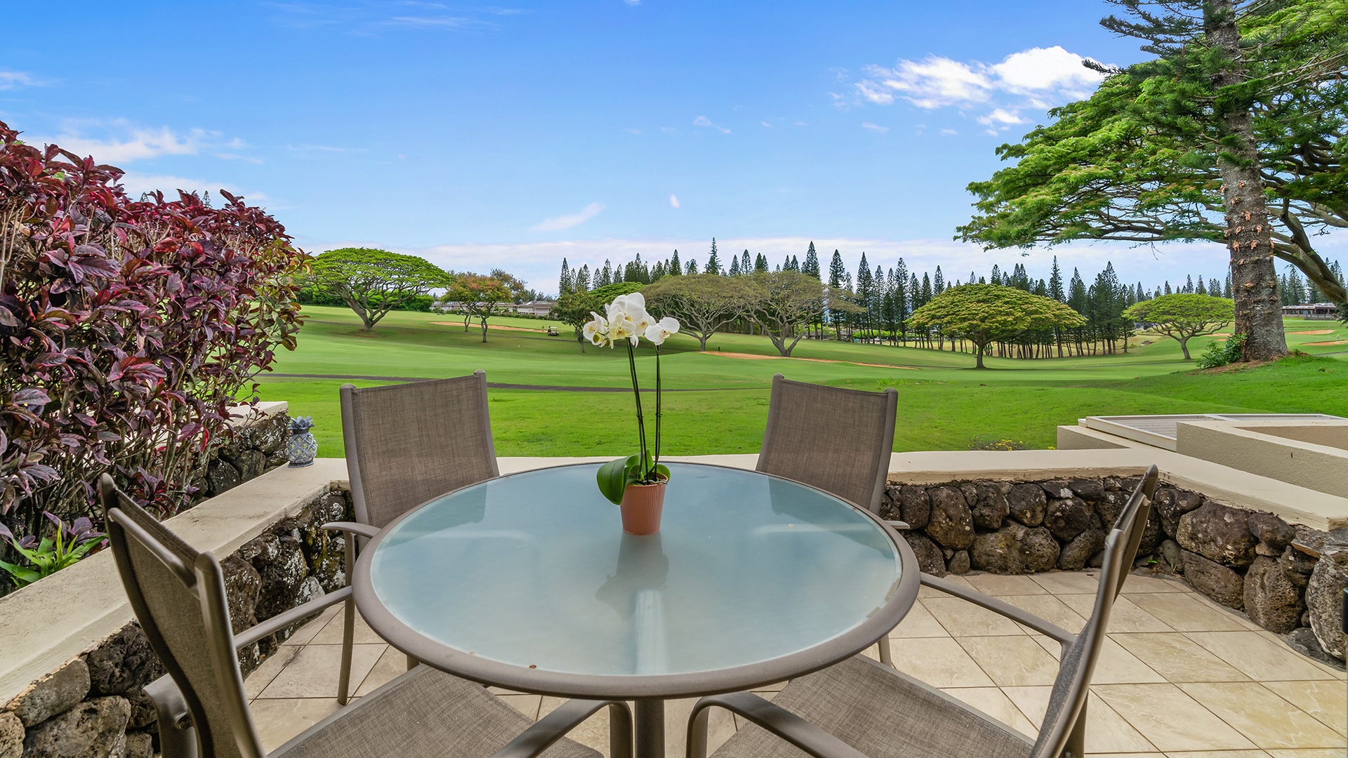 This tastefully renovated ocean view patio ("P" or garden level) end unit offers its guests a spacious split level home away from home in the peaceful setting of the Golf Villas with a peek-a-boo view of Molokai, covered patio and open sunny deck.