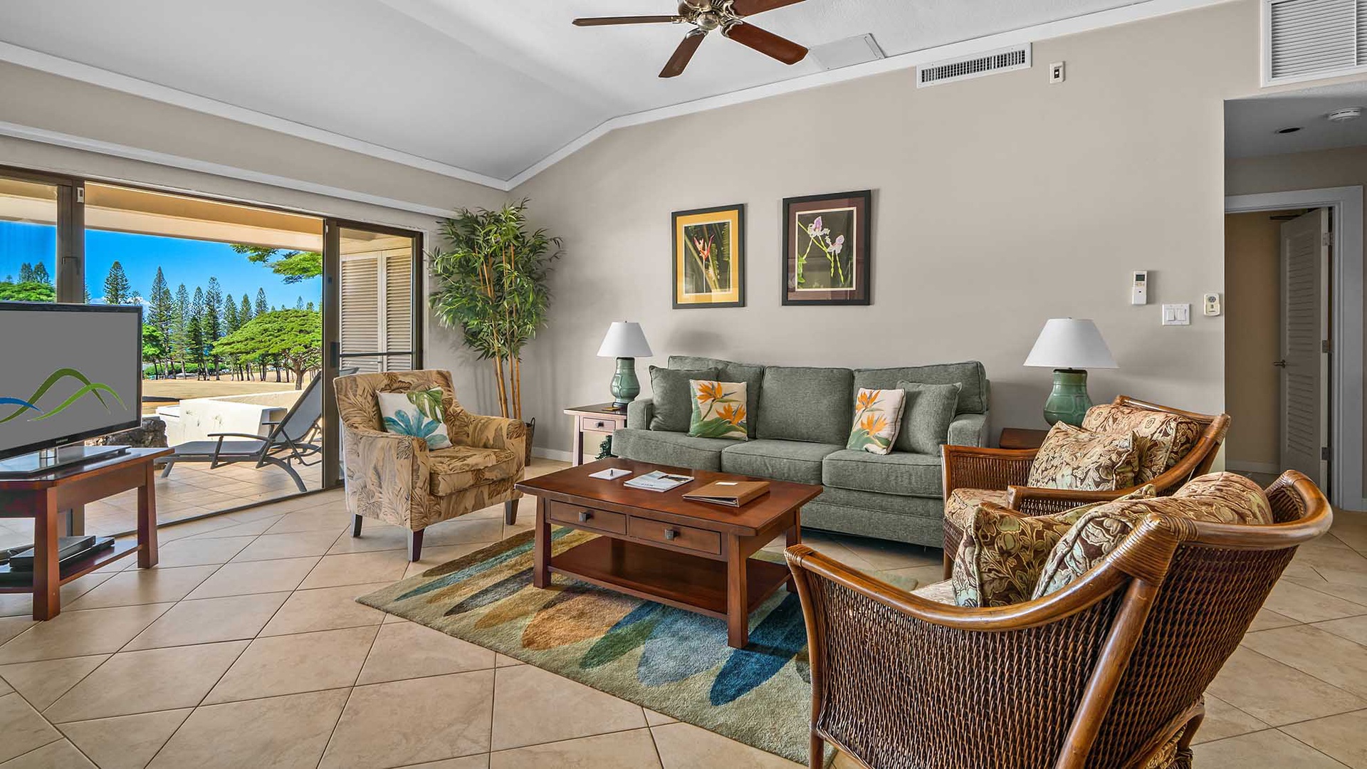 We really enjoyed our stay in the golf villa! The living room was great to hang out in and the kitchen was fully stocked with about everything we could have needed! The beds were really nice and comfortable and the air conditioner certainly did its job to help us get a fantastic night’s sleep. The villas were really quiet as well which was nice. The Kapalua resort shuttle was also super convenient and made the trip down to the beach less than 5 minutes. And the beach towels and chairs were a really nice touch. The patio provided a great spot to get some work done during the day and relax with a drink in the evening. There’s also a hose on the patio, so if you’re divers/snorkelers like we are it’s a great spot to rinse off your gear! We only had one small issue with a night time cockroach visitor (such is island life) but management sent maintenance out the next morning so set up traps and change our sheets.
