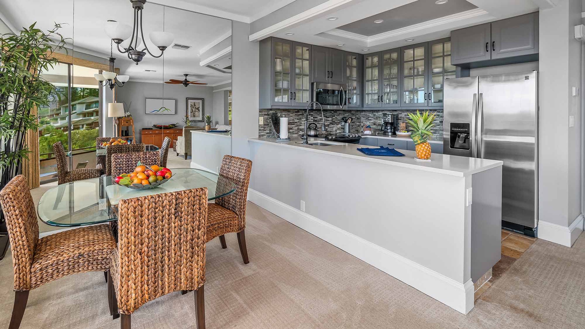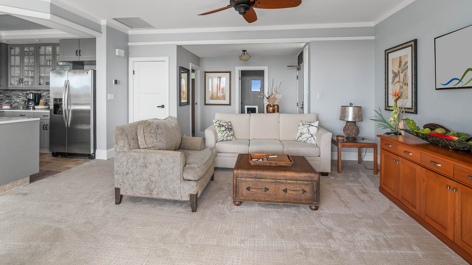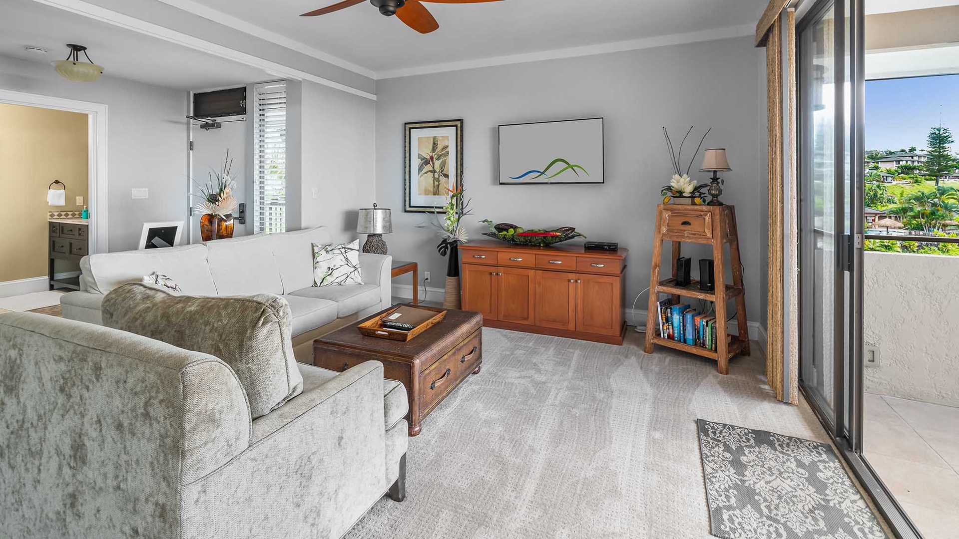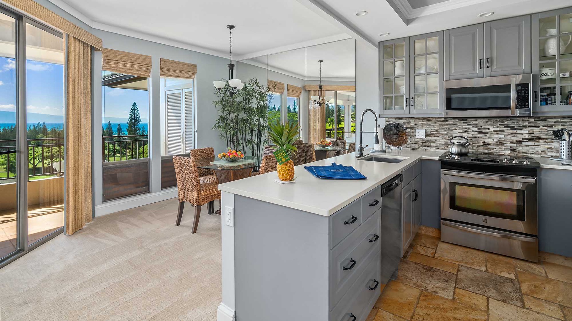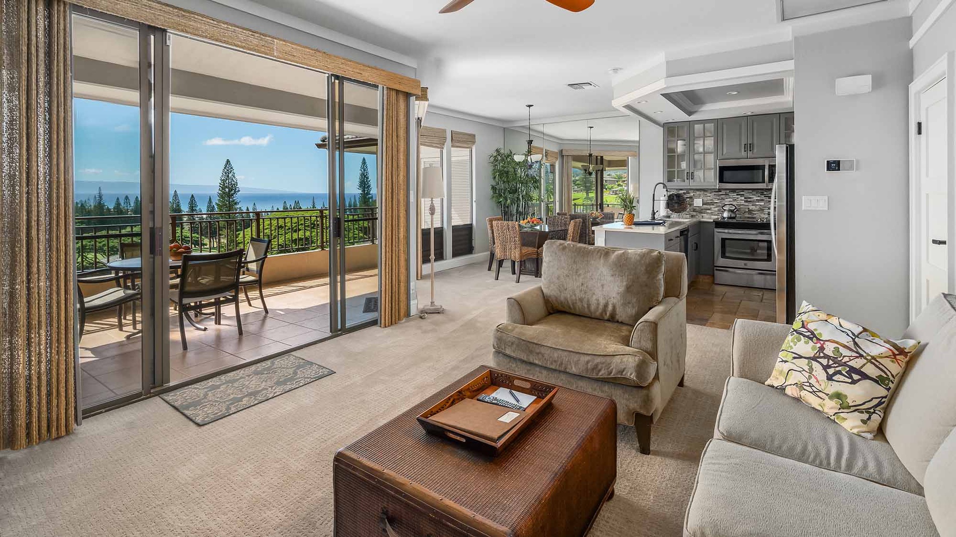 • Great room design – AC, kitchen, dining and living room all with ocean and golf course views, access to ocean view lanai