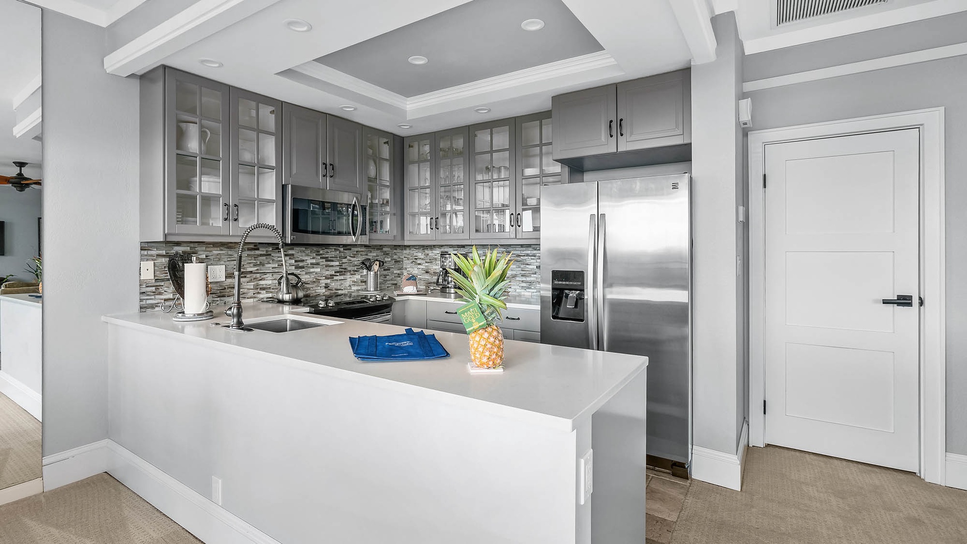 • Fully equipped designer kitchen with stainless steel appliances