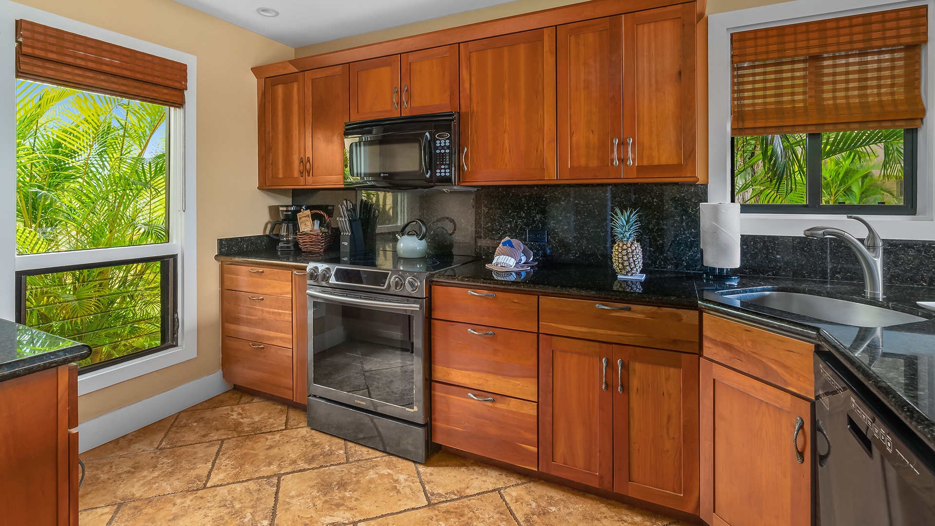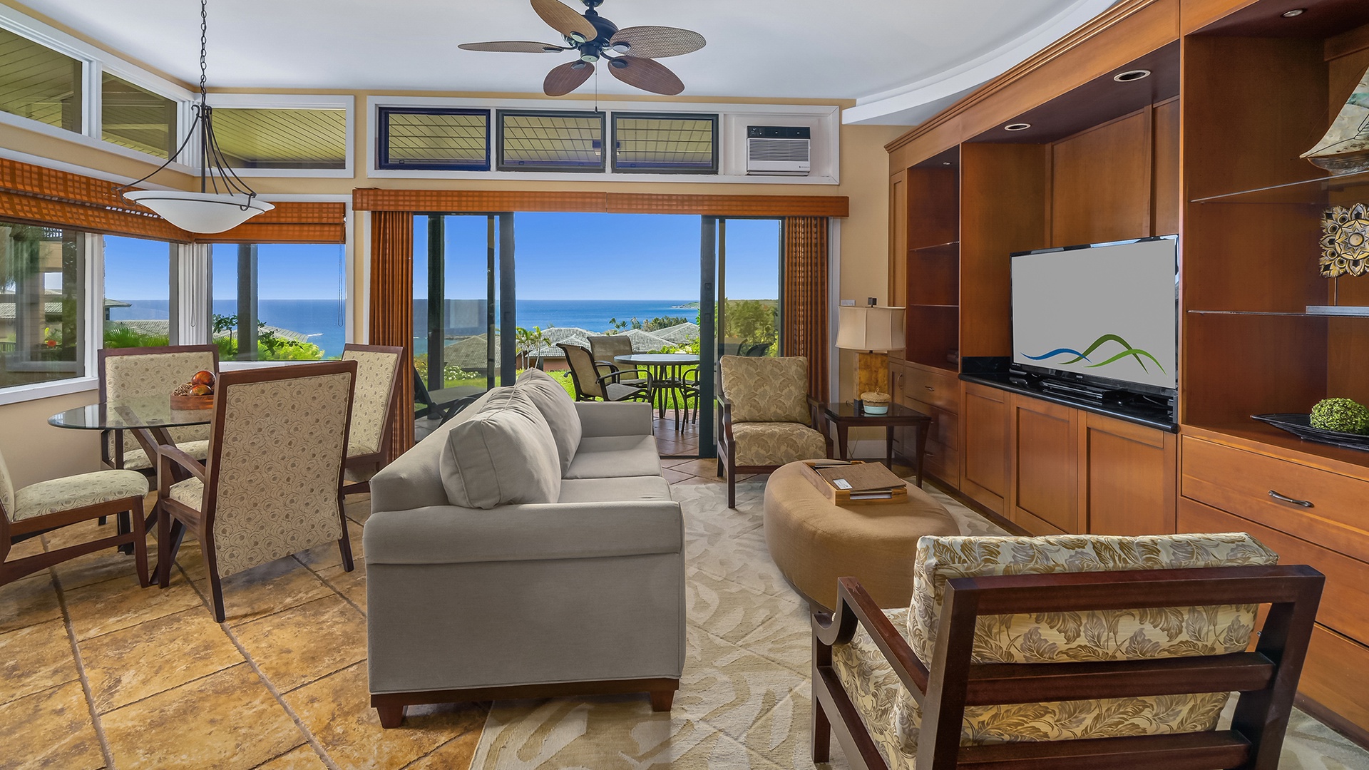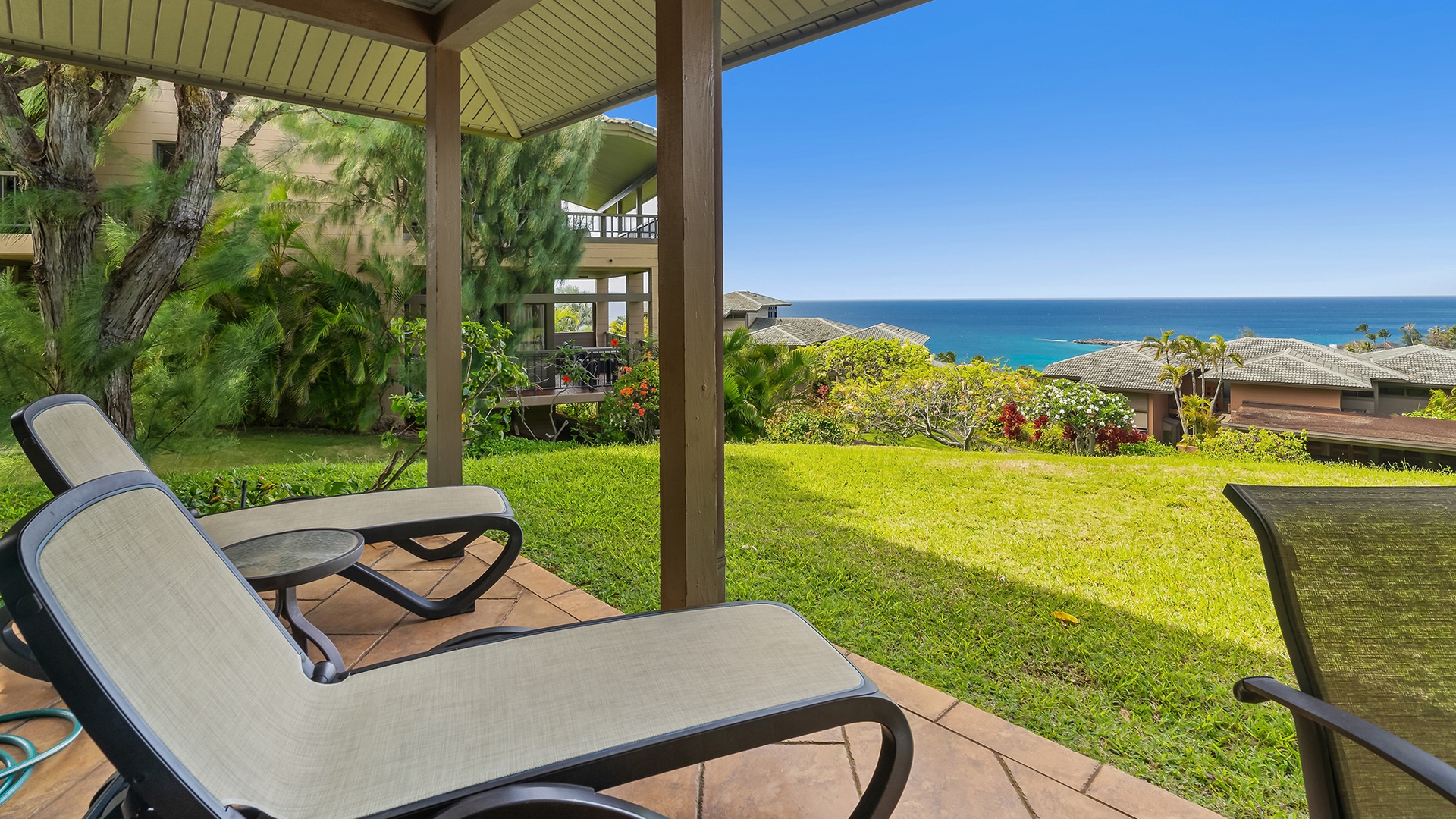 • Great room design – AC, kitchen, dining and living room all with ocean views, access to ocean view lanai