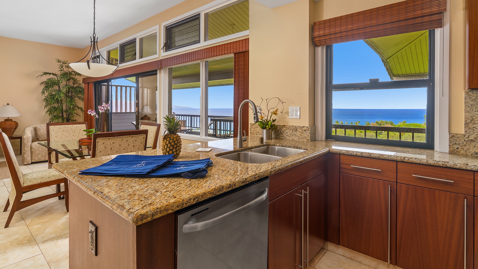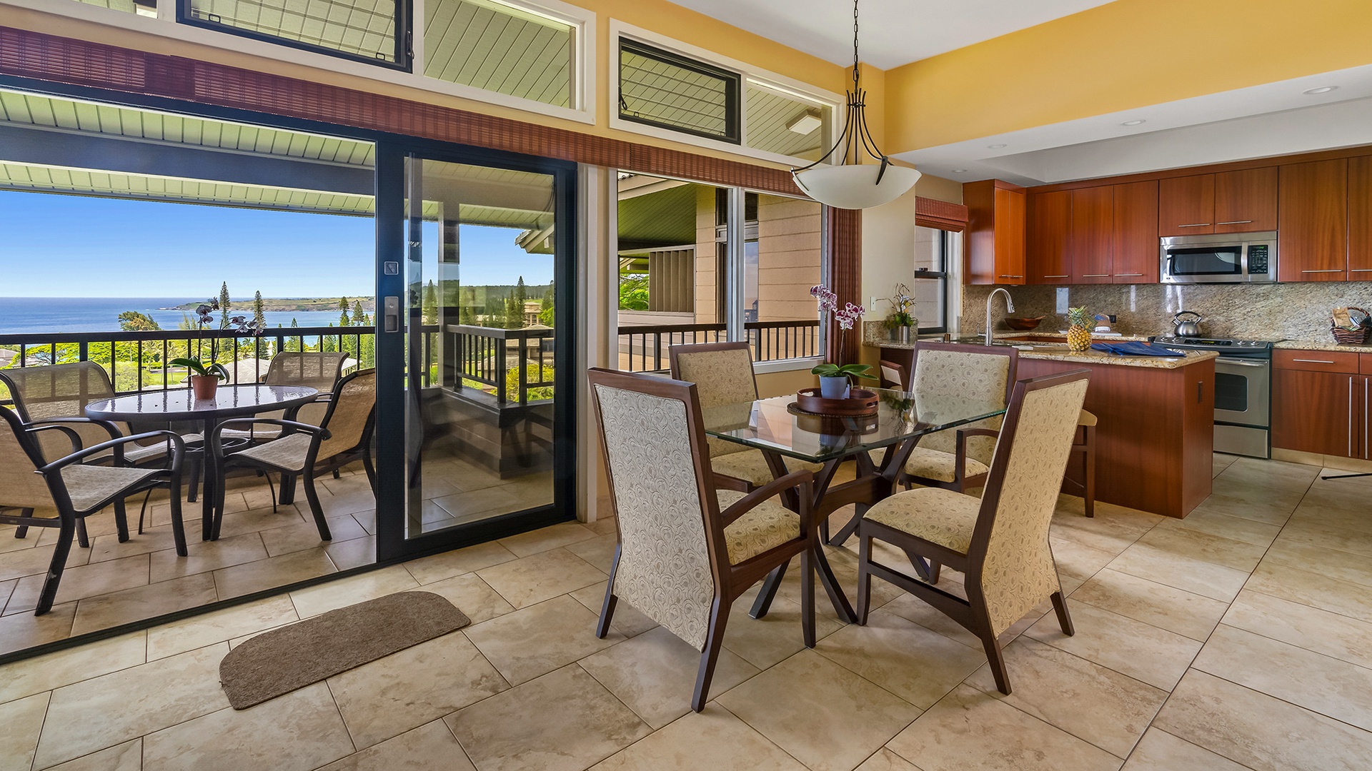 • Great room design – AC, kitchen, dining and living room all with ocean views, access to ocean view lanai