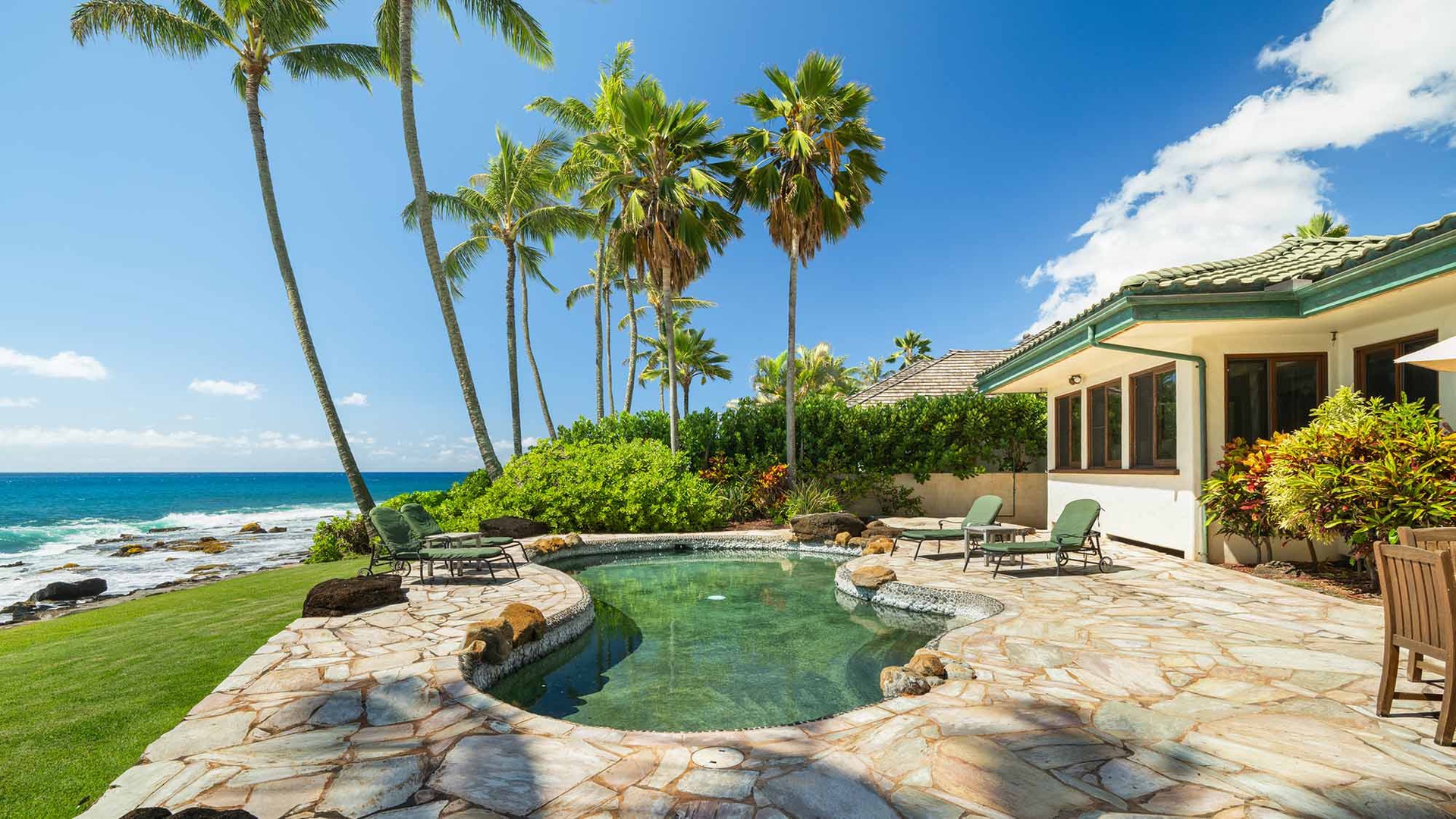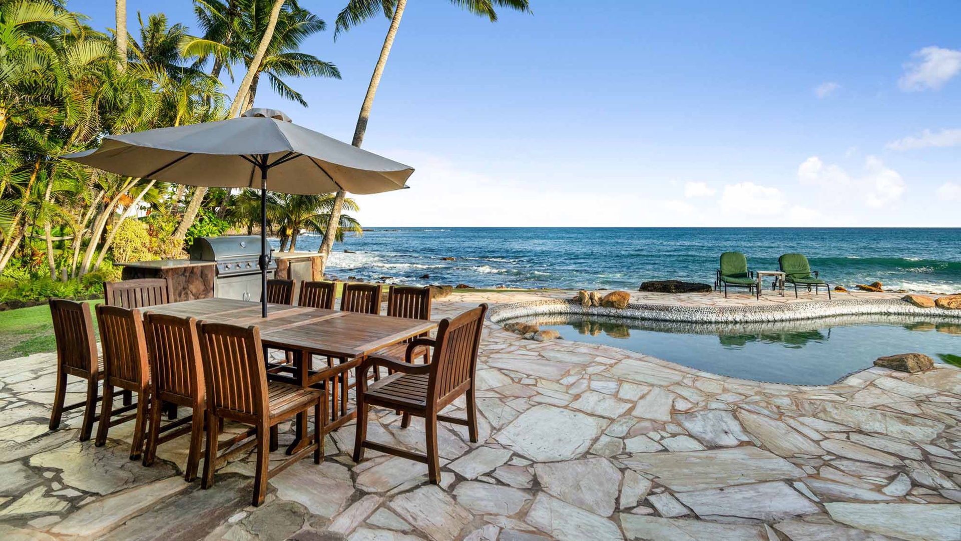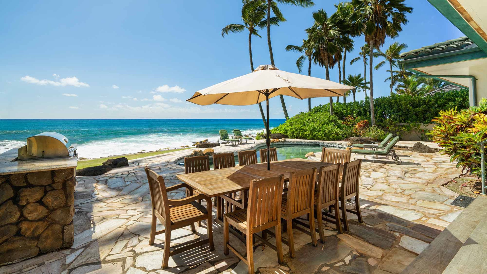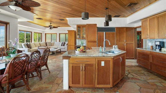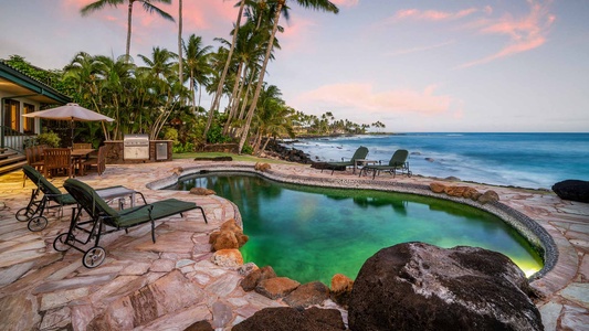 We stayed in this luxurious home over the Christmas holiday. The home was beautiful, very well maintained. The kitchen was lovely and had everything we could possibly need. The oceanfront pool was our favorite. The little touches, i.e., the Mai Tais, the welcome basket full of goodies, the well stocked essentials such as extra towels, pool towels and toys, was appreciated. There was a power outage while we were there and it caused the pool pump to quit working. We called Parish Kauai's office and within a couple of hours we had two maintenance personnel at our door to fix it. Just excellent service! We will definitely stay with Parish Kauai again in the future.