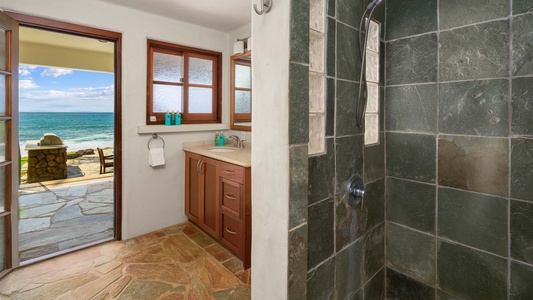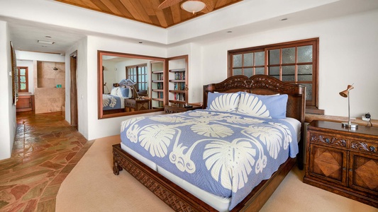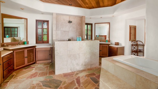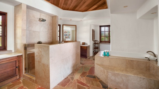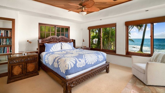 •	Master Suite – oceanfront lanai, king bed, flat screen TV, AC, full bath with Roman walk-in shower, jetted tub, dual sinks, walk-in closet