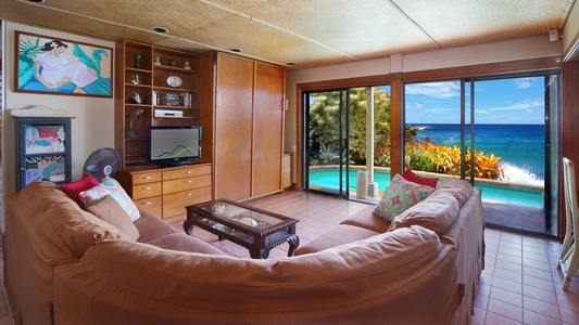 • Fourth Bedroom or Family Pool Room with oceanfront living room, queen • Murphy bed, access to oceanfront lanai and pool