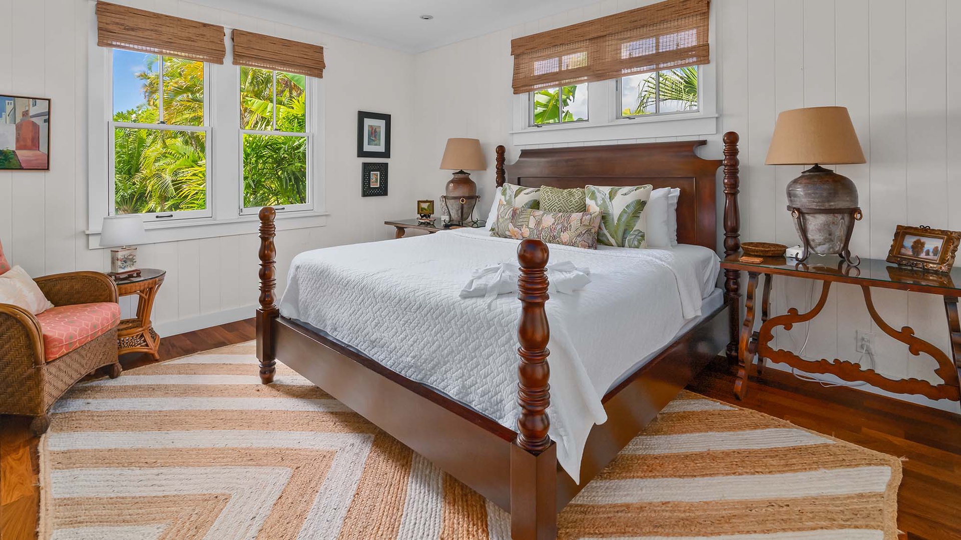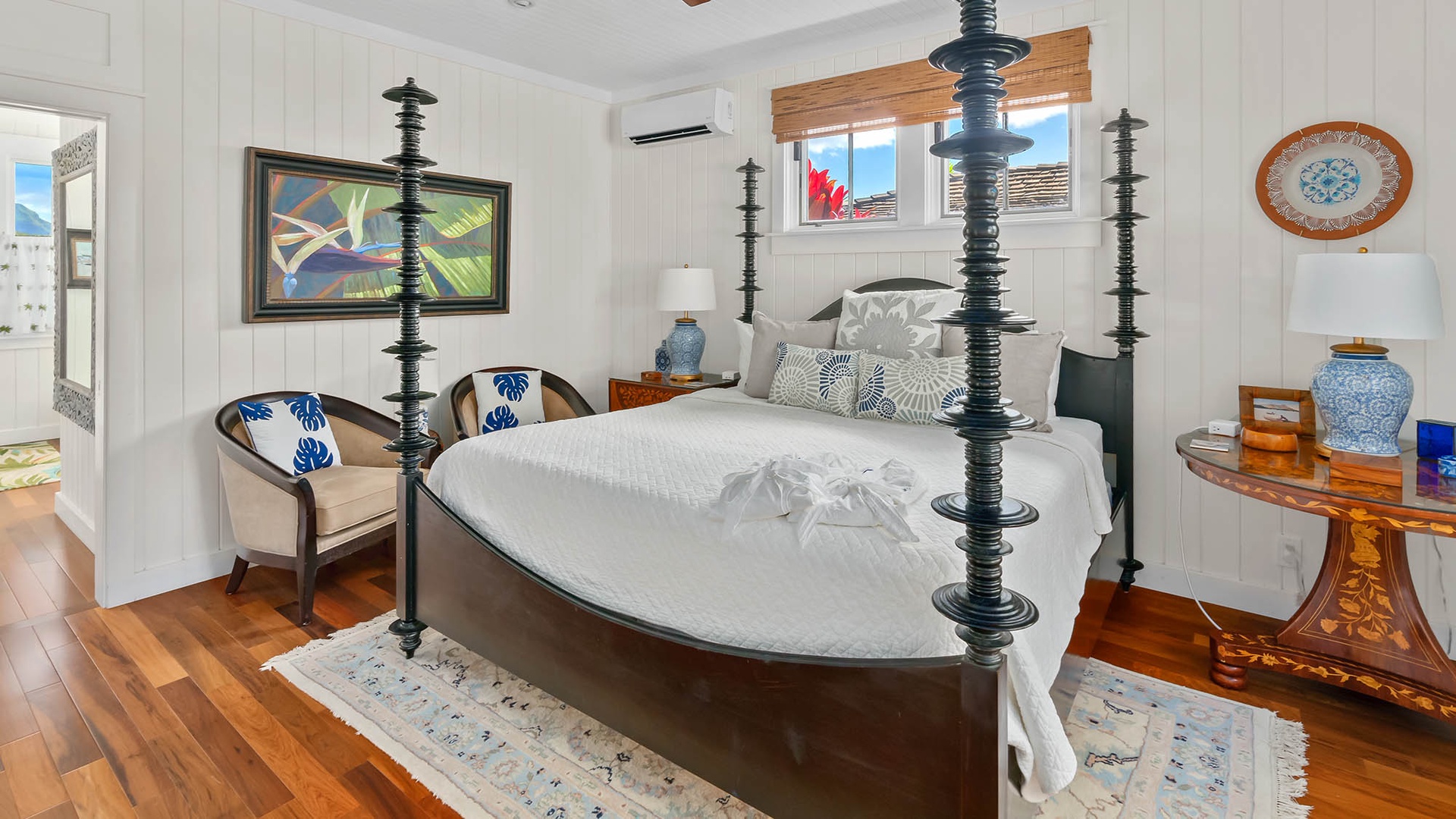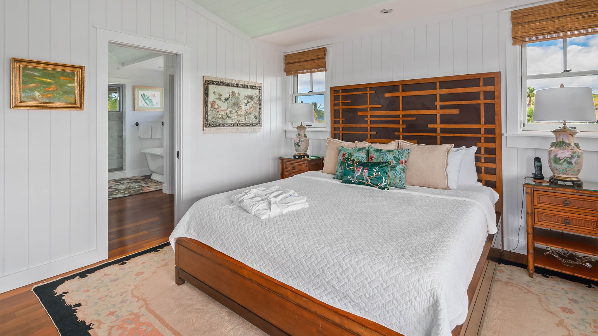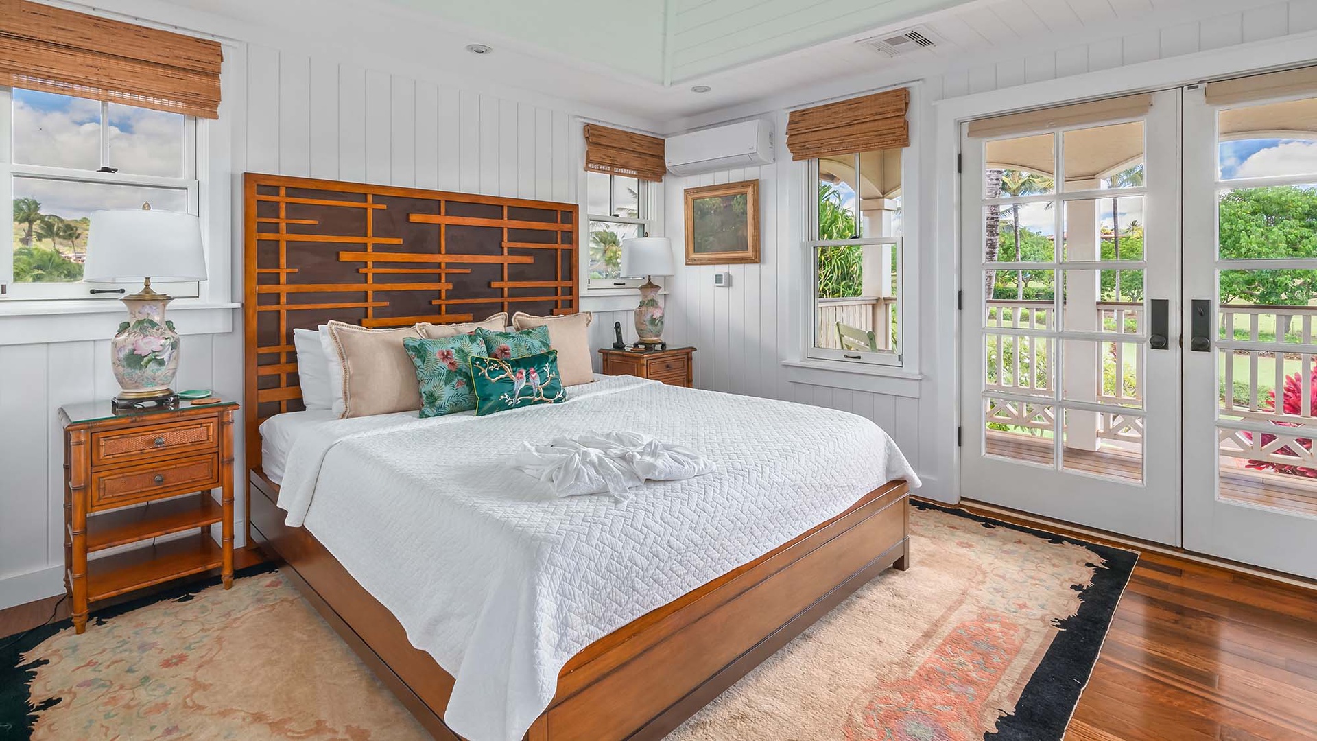 • Master Suite – Upper level, ocean view, AC, king bed, flat screen TV, full bath with walk-in shower, separate tub, private lanai