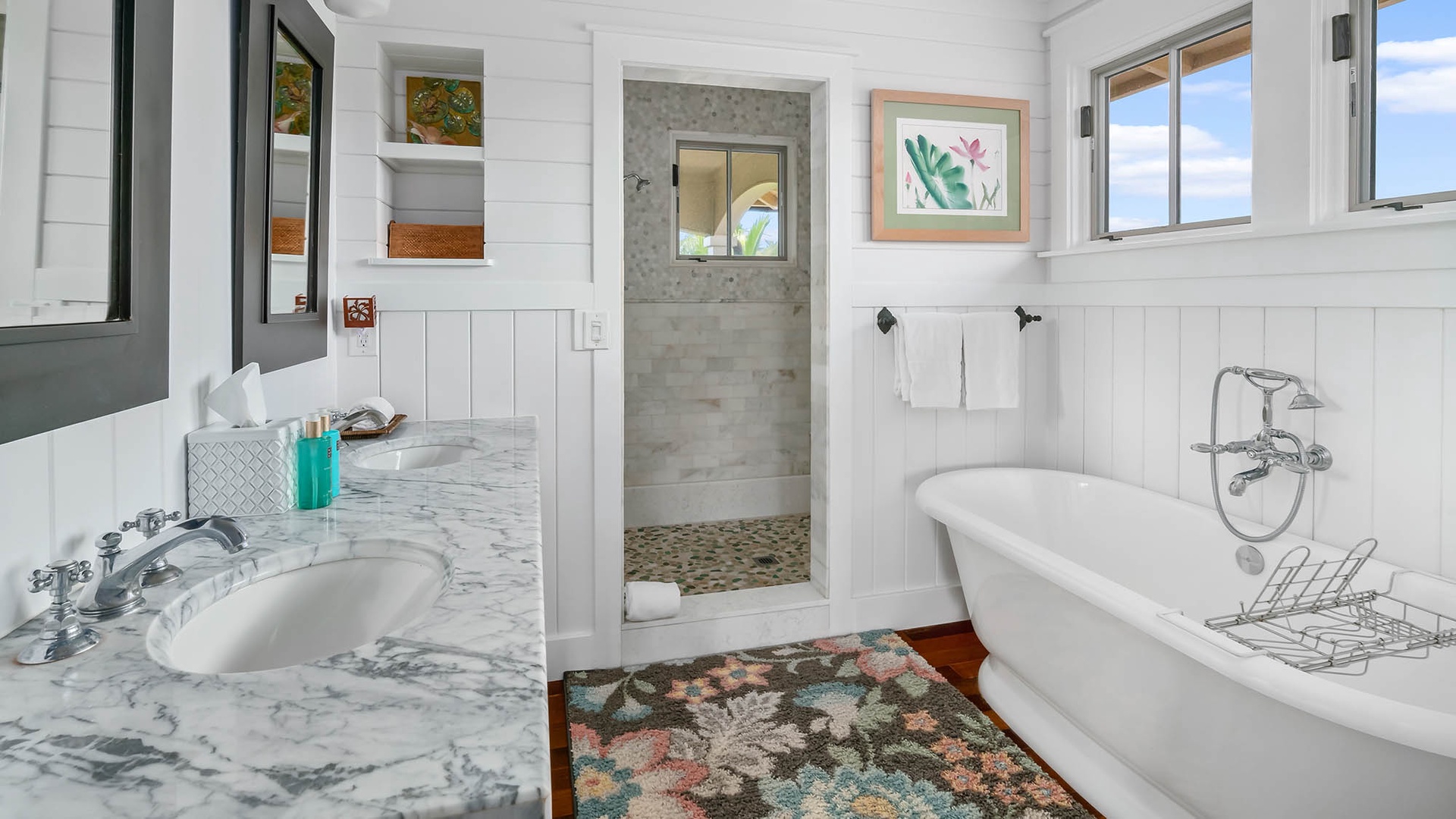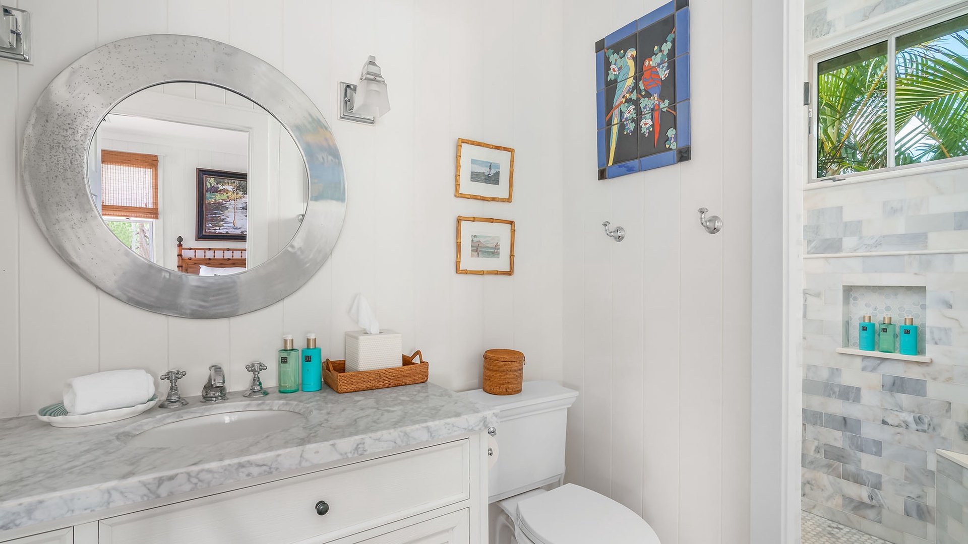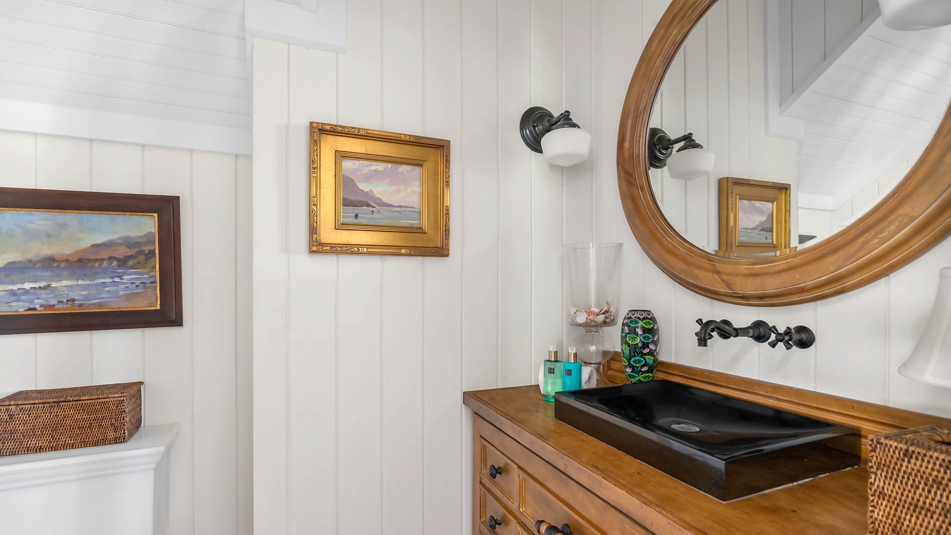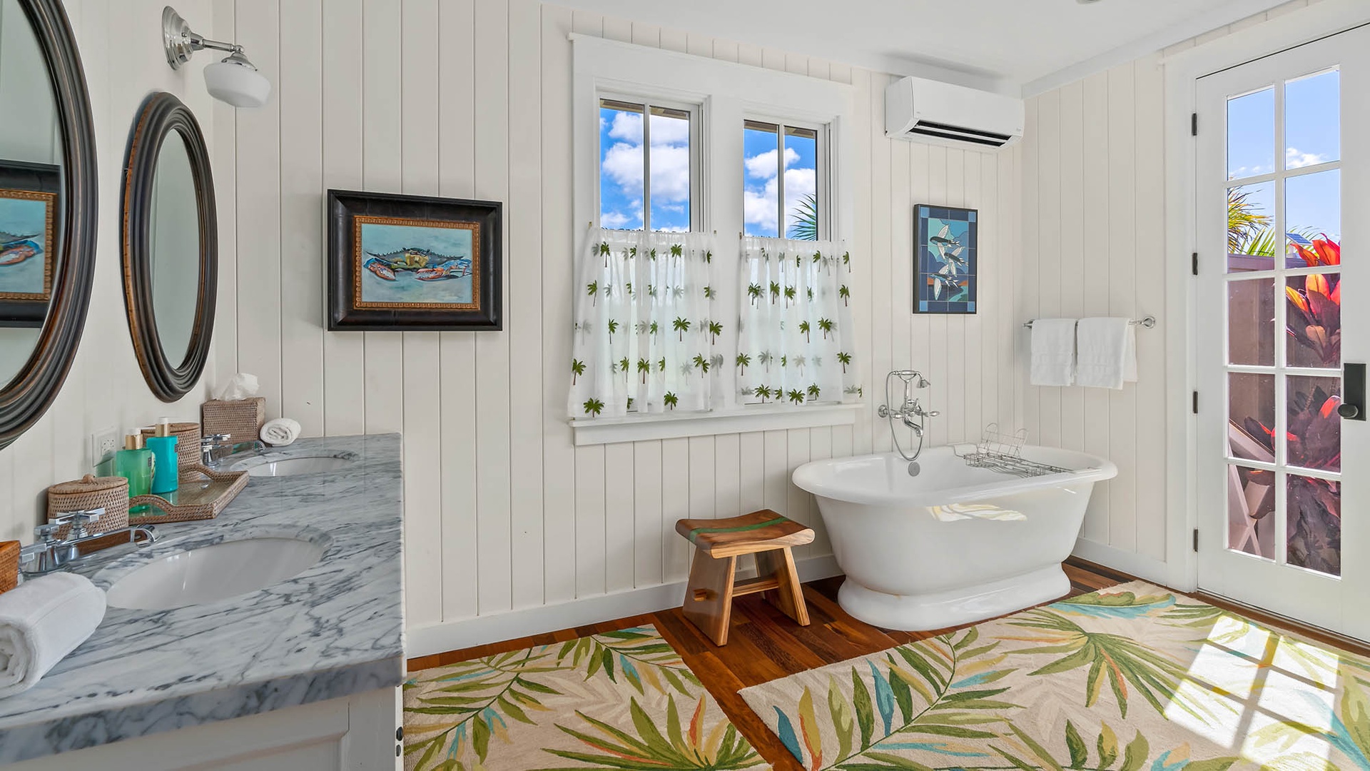 • Master Suite – Upper level, ocean view, AC, king bed, flat screen TV, full bath with walk-in shower, separate tub, private lanai