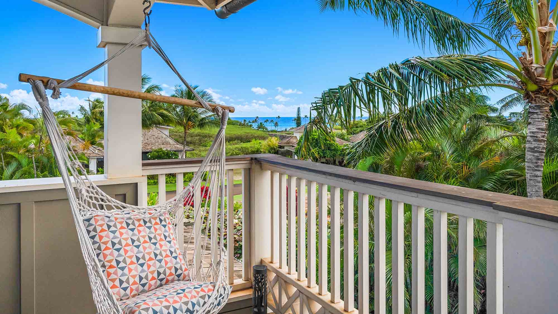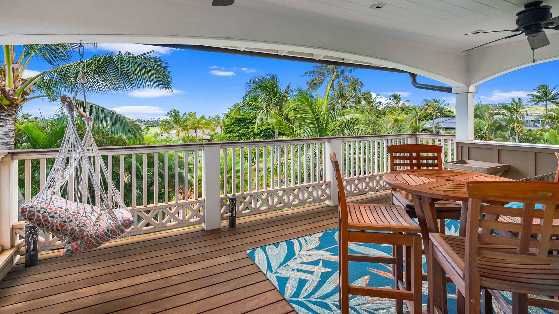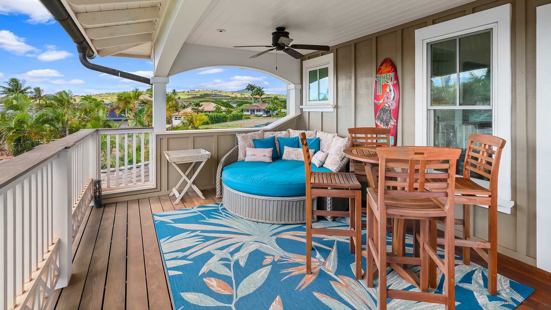 • Extra large covered lanai with ocean views, seating area, gas BBQ