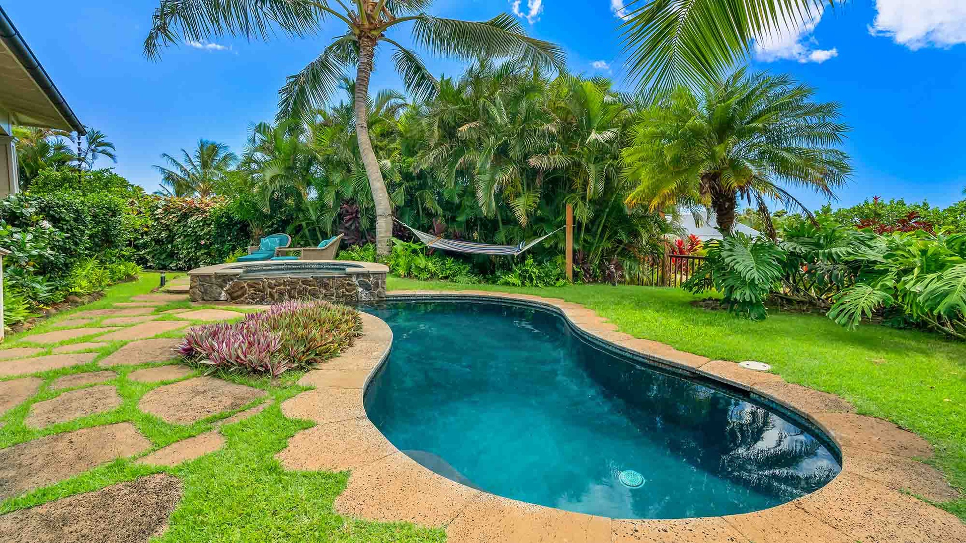 Indulge yourself on your Kauai vacation when you stay at this handsomely designed Kauai home. Featuring modern plantation style architecture with a spacious and open floor plan, a private swimming pool and spa, extraordinary outdoor living area and ocean views perfect for viewing Kauai’s sunsets. Our superior amenities include the personalized services of a guest concierge.