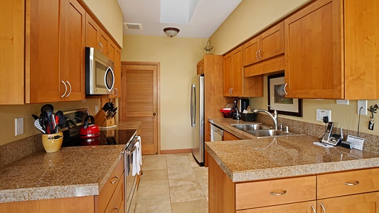 • Fully equipped kitchen, granite countertops, stainless steel appliances, entry to garage