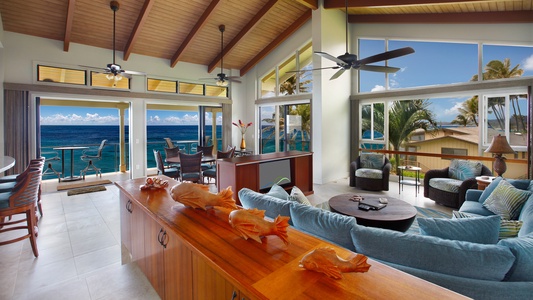 • Wrap around oceanfront lanai with dining, sitting and lounging areas