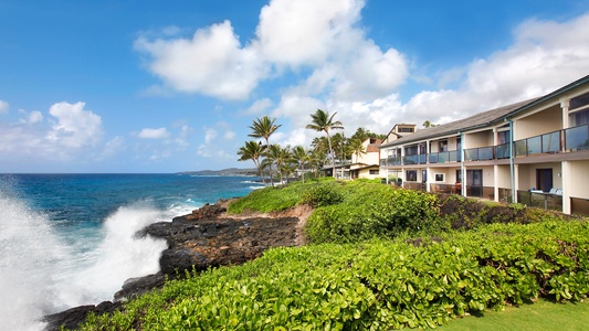 Located on the southernmost point of Kauai, this unique oceanfront property is situated on the edge of a bluff providing spectacular views of the blue Pacific and the entire Poipu coastline from each unit. Incredible ocean views are the dominant feature of this resort which offers its guests a spacious swimming pool and sun deck, spa, tennis courts, and more. Situated on a bluff above the rocky shoreline on the Poipu coast there are great beaches, the Grand Hyatt Resort & Spa and the Poipu Bay Golf Course, all just a few blocks east or west