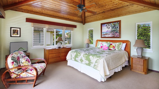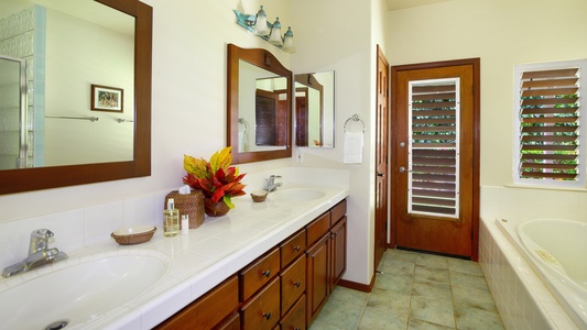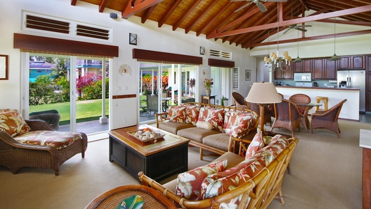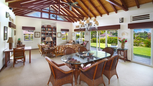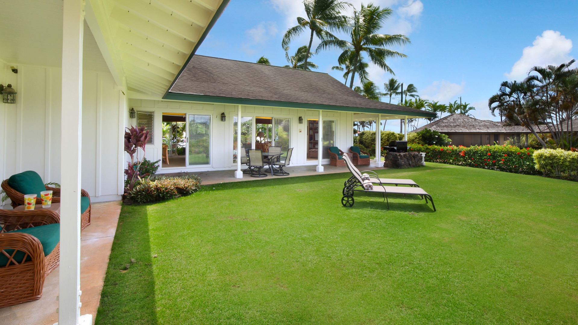Our entire family agreed that we couldn’t have found a more perfect home for our Poipu vacation. This spacious home is full of light, the sounds of the waves and surrounded by lovely flowering landscaping. The furnishings and décor impart the spirit of Kauai while being comfortable and conducive to family gathering and conversation. Each of the bedrooms offer plenty of space for a little private time or a nap, and with four bathrooms, there was never any waiting to get a shower or bath. As is mentioned in numerous reviews, the location of the house is ideal. We especially loved that the entry is on a side street that has much less traffic than the main drive along the shore, which was less worrisome for us with an active 2 year old. With numerous outdoor seating options, there is always a place with shade or sun, and the yard was always active with birds. Having a garage was handy as well, and we found everything we needed there, such as beach chairs, coolers and toys. This house is so easy to be in….. everything is where you’d think it might be, the fan and light switches are all labeled to make comfort control easy, and the living room is well stocked with music, games and videos. I was especially glad that we didn’t have to lug our dominoes all the way from the mainland! We’re already talking about our next trip to Poipu, but won’t buy the plane tickets until we book this beautiful home.