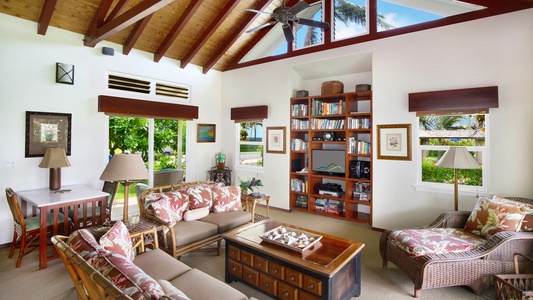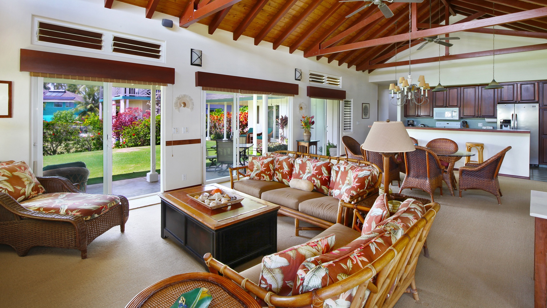 The house was lovely and spacious. Kitchen was very well-equipped. Lanais on 3 sides of home. Pretty, garden-like yard. Short walk to beach. You could hear the palm fronds swaying in the wind at night as well as waves crashing. Our only complaint was the lack of AC, as the (downstairs) family room did get warm in the afternoon, even with the fans. Didn’t need it upstairs as the cross-breezes made it very pleasant. All in all a great stay and we would recommend this home and we would use this home again!