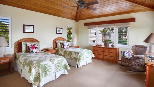 What an amazing home! It’s a very short walk to Poipu Beach (best on the south shore) and close to dining/shopping options. We were 3 adults and 2 kids (ages 6 and 2). The house was perfect- lots of space to relax both indoors and outside on the lanai/grassy area (kids especially loved it). Kitchen is well stocked and they had beach items (chairs, coolers, etc). The rooms are spacious (we actually used the walk in closet for the baby to sleep in) and it was so handy each bedroom had its own bathroom, plus an extra bathroom!