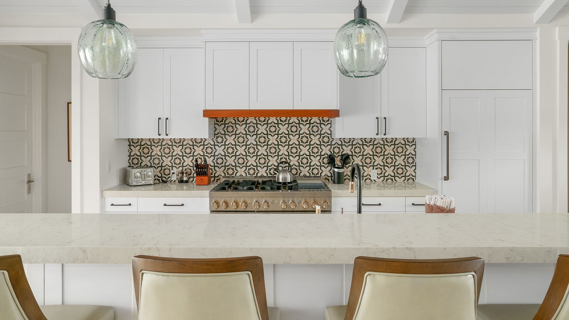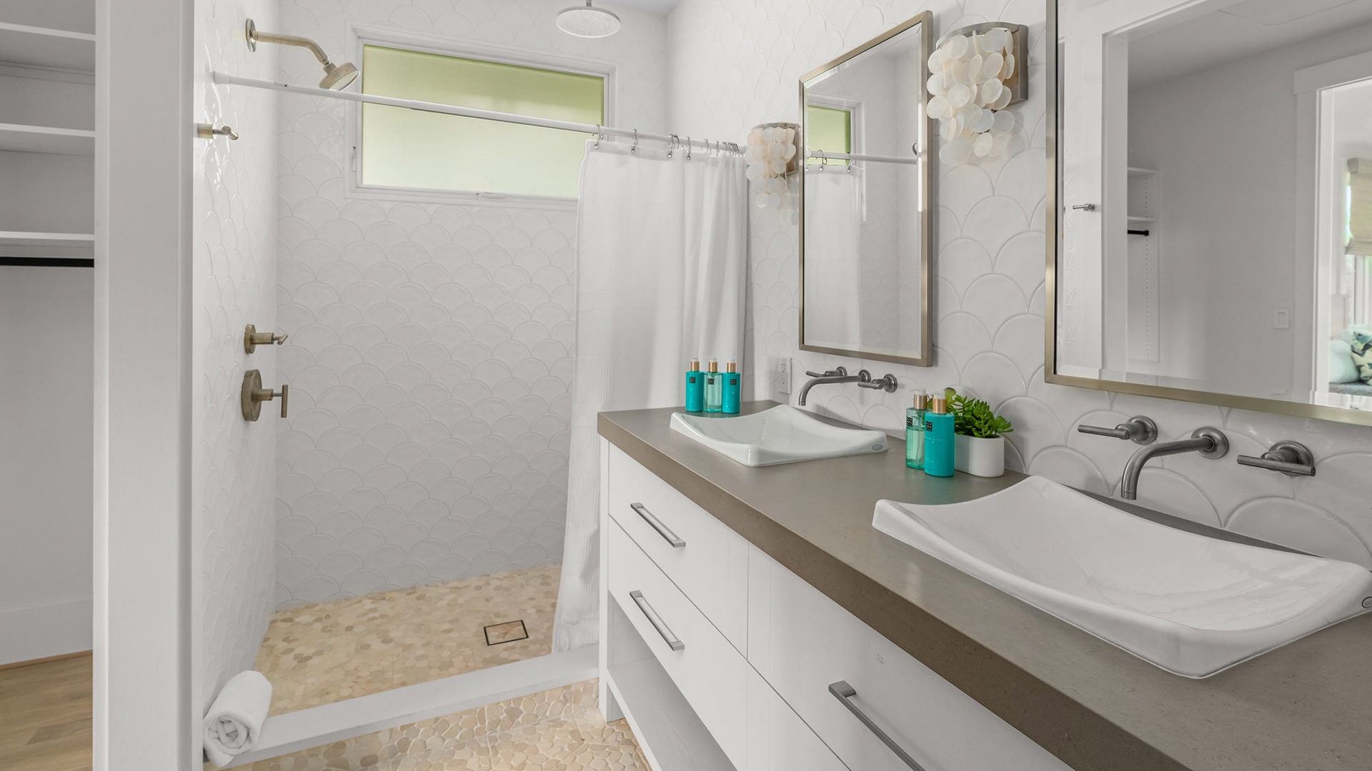 Simply Designed & decorated impeccably! Amazing, large spa-like bathrooms, roomy, comfortable beds & bedding…Prepped most meals in the incredible kitchen…And WOW, that backyard, pool and bbq area!!! Grilling several nights on the amazing bbq.