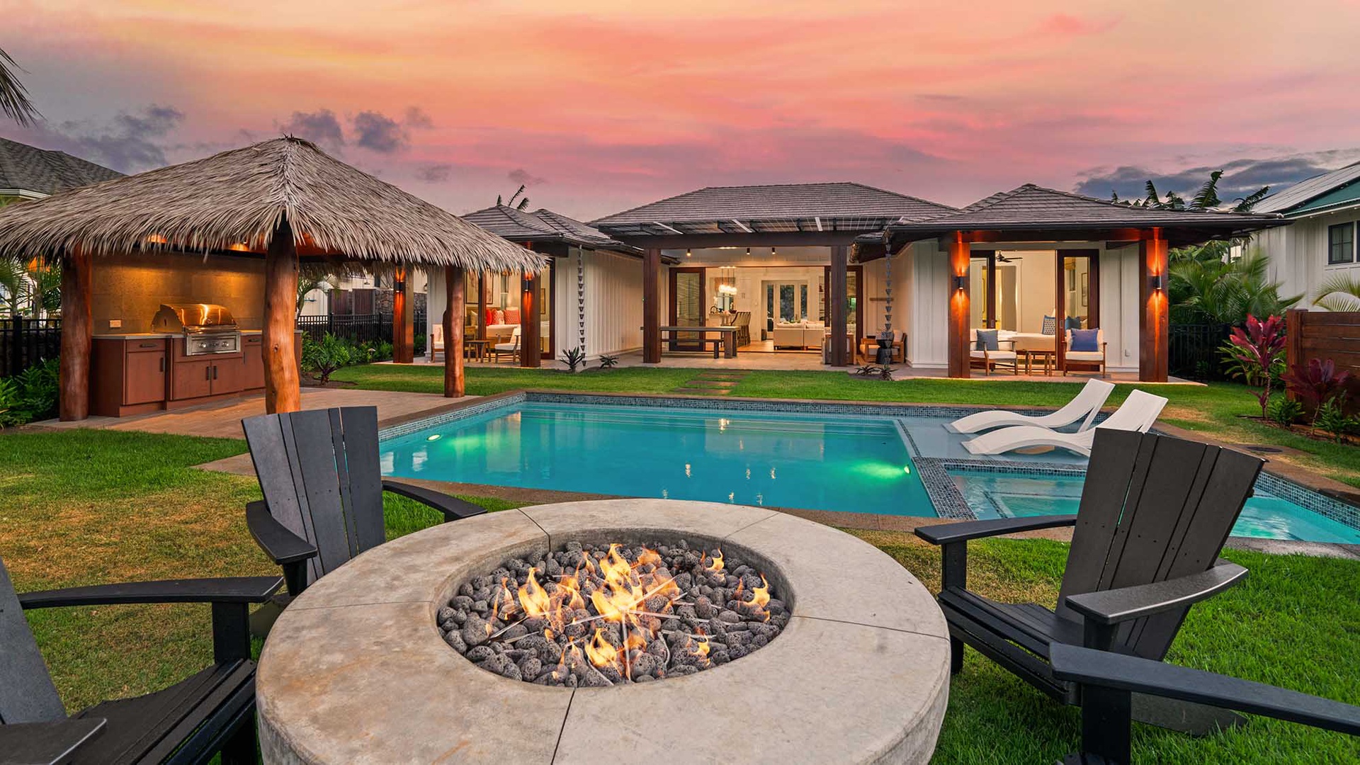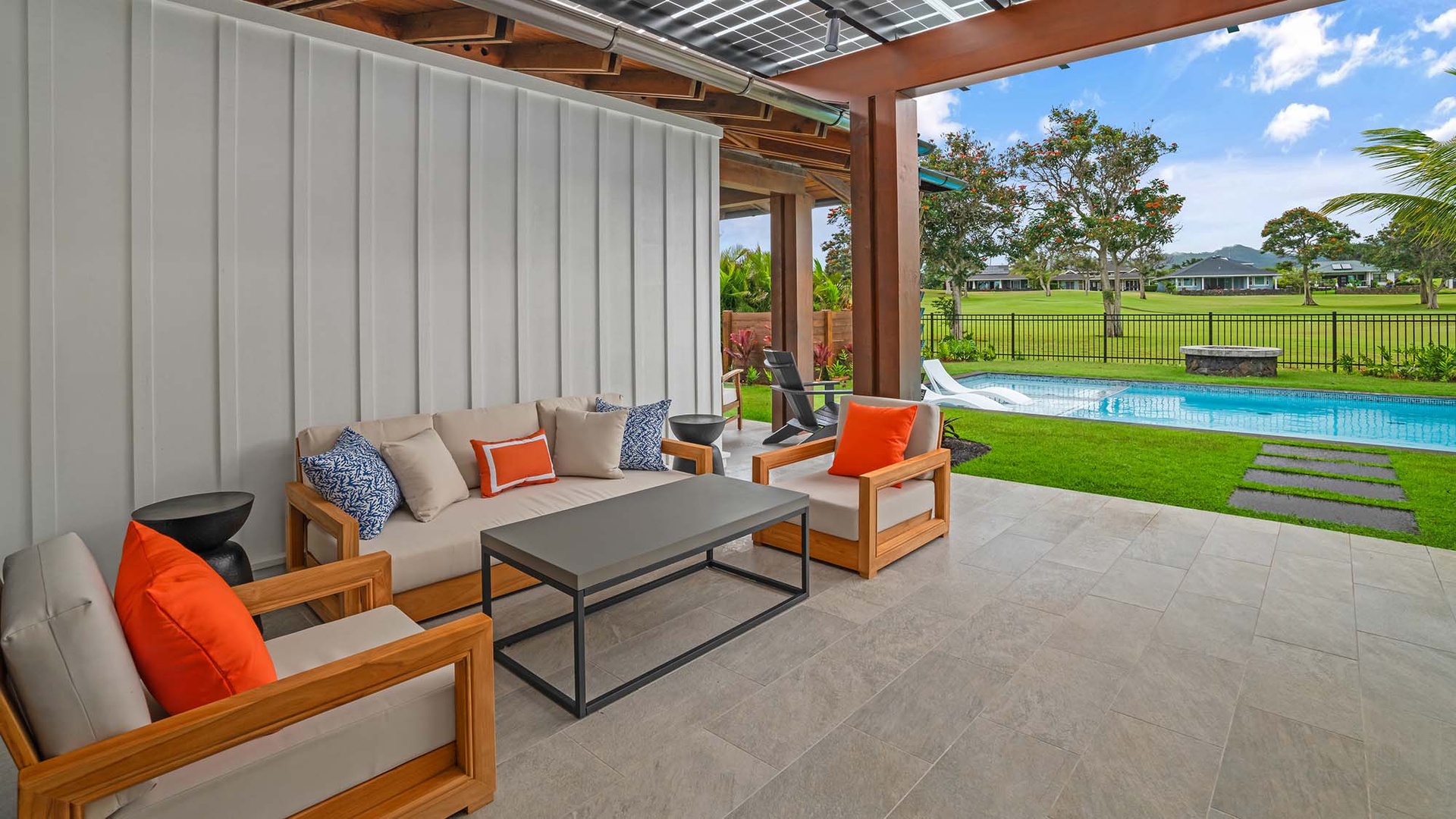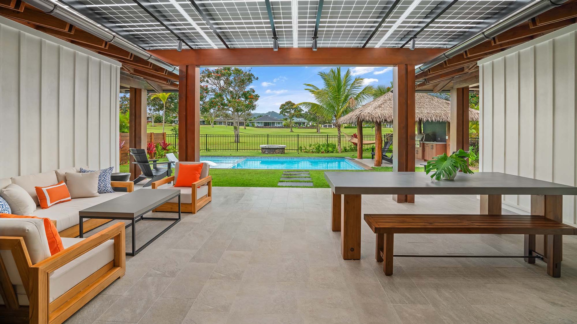 • Covered lanai with outdoor seating and dining area