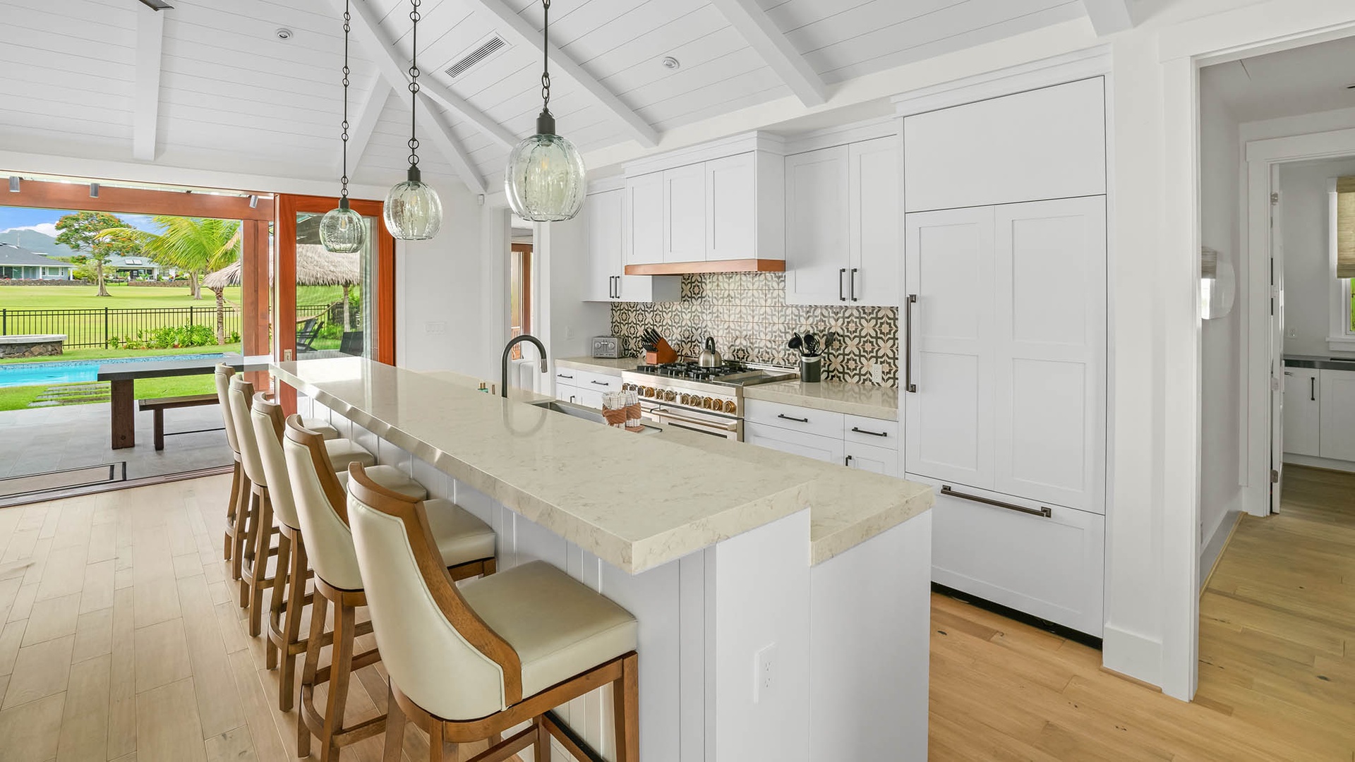 We've stayed in Poipu at multiple locations and this property is by far the best! You're greeted by a dramatic entrance to an enormous and welcoming great room with plenty of seating even for a large family. The kitchen is equipped with high end appliances that will satisfy even the most particular of chefs. All of the bedrooms are tastefully decorated and have super comfortable beds. The real stand out is the cavernous primary bathroom with it's his & her's shower, deep soaking tub and even a custom outdoor shower. There's also a private pool and spa with an awesome view of the golf course as well as a fully appointed outdoor kitchen complete with flat screen TV! We tried to book this property for a return stay but they were already booked up so make your reservation early!